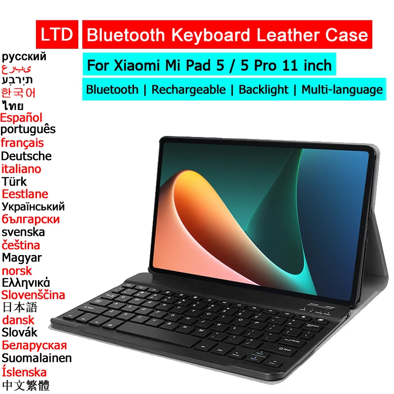 Bluetooth-клавиатура для Xiaomi Mi Pad 5 Pro 11, чехол для планшета, русская, Арабская, иврит, испанская, французская, тайская, Корейская, итальянская клавиатура