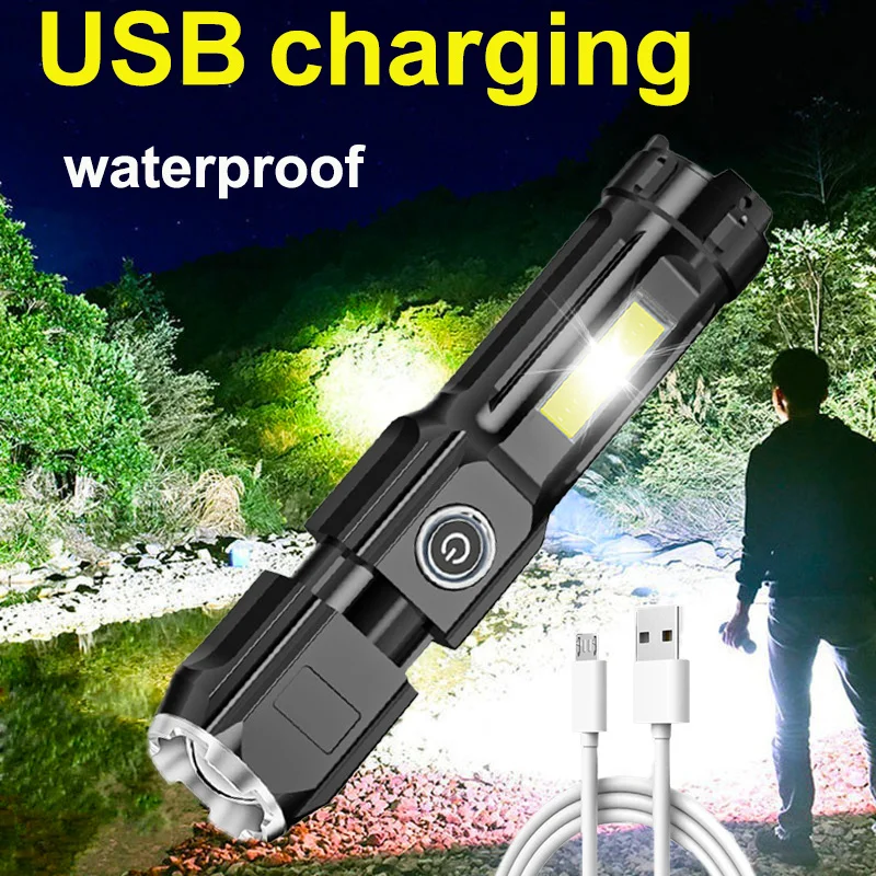 Портативный миниатсветильник ный фонарик с USB, суперъяркий светодиодный фонарь COB, уличный фонарь для кемпинга со встроенным аккумулятором, магнитный фонарь для рыбалки