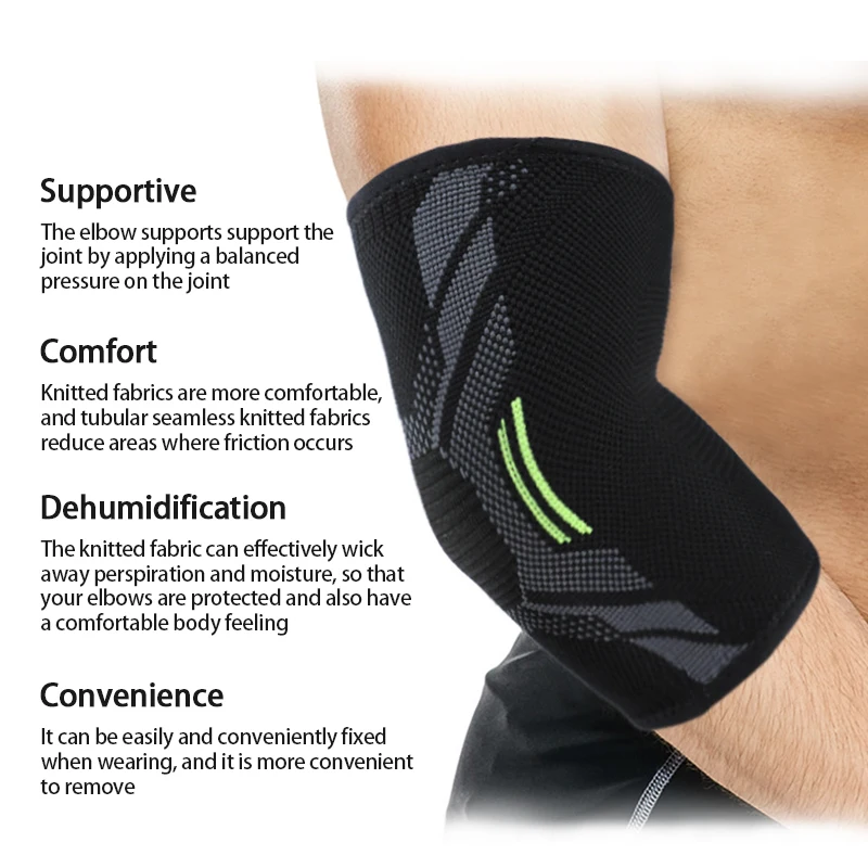 Функция: налокотник поддерживает суставы путем нанесения сбалансированного давления на суставы. Трикотажная ткань удобная и дышащая.