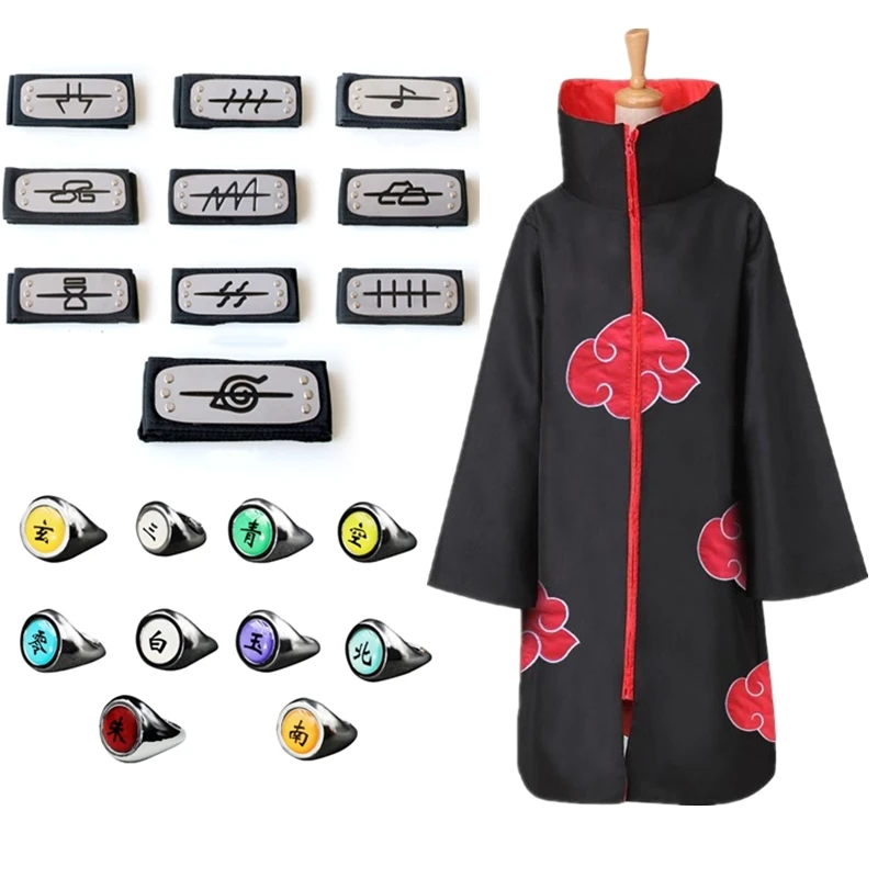 3 шт.компл. аниме Narutos костюм для косплея ниндзя Props плащ Акацуки Ring повязка на голову Itachi аксессуары Игрушка костюм для Хэллоуина для мужчин