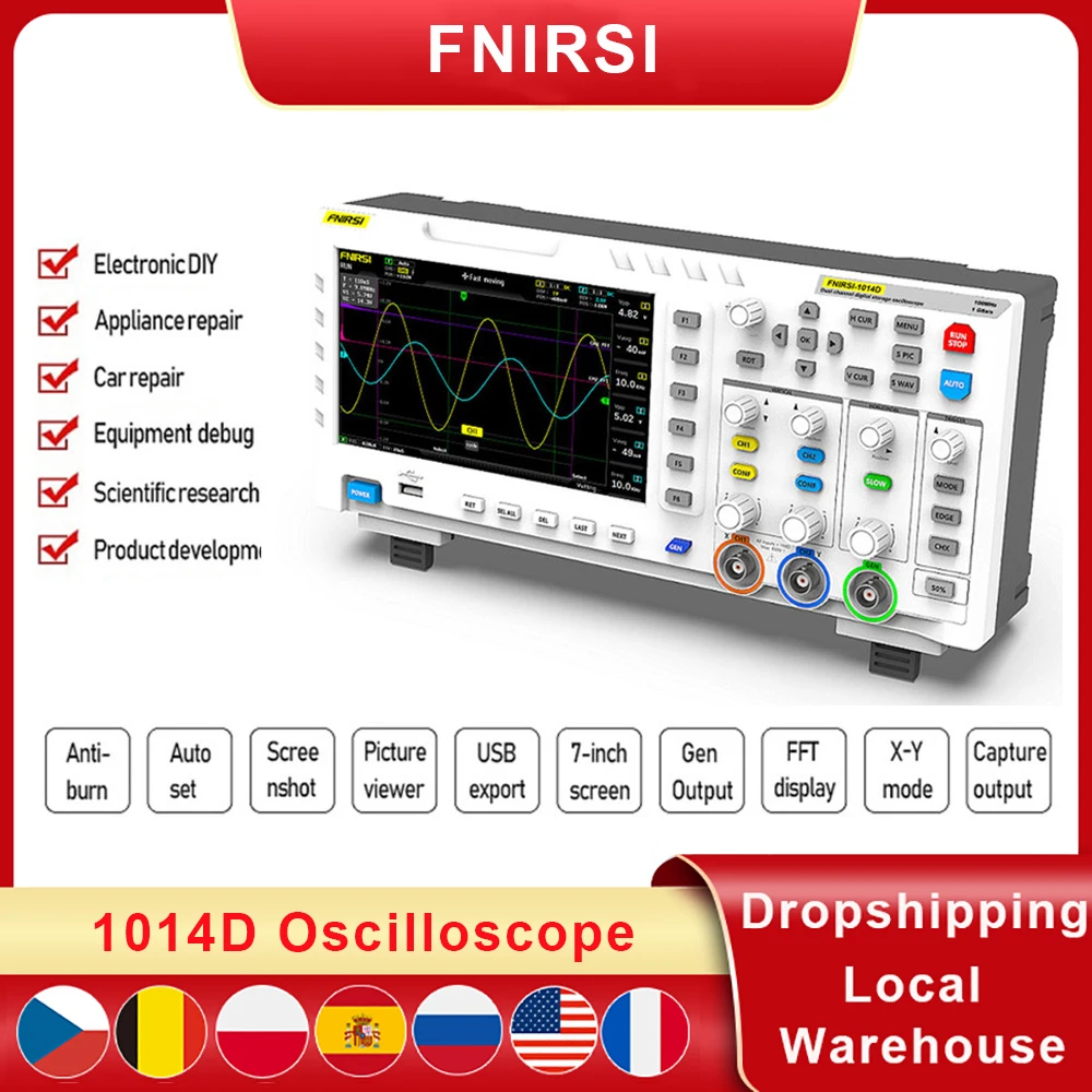 Цифровой многофункциональный осциллограф FNIRSI 1014D с ЖК-дисплеем ЕССША 110 МГц двухканальный измерительный Профессиональный осциллограф инструменты