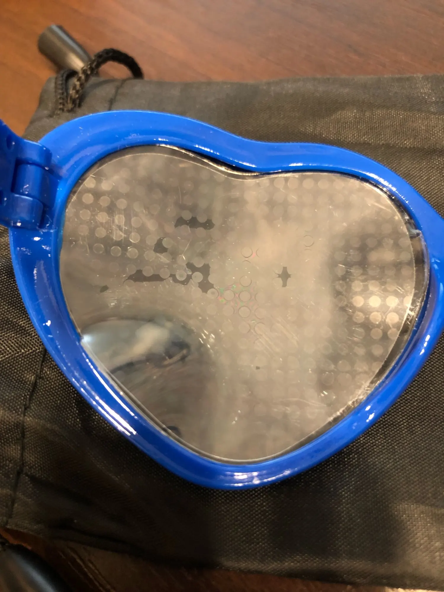 Я получил эти очки как свободную. Они прибыли довольно быстро. Они превращают свет в сердца, как они говорят, но сердца не очень яркие. Я думаю, это потому, что пленка на очках склеена плохо. Мне все еще нравятся эти очки. Они поставляются с черным мешочком для хранения очков внутри. 5 звезд, потому что они хороши по цене