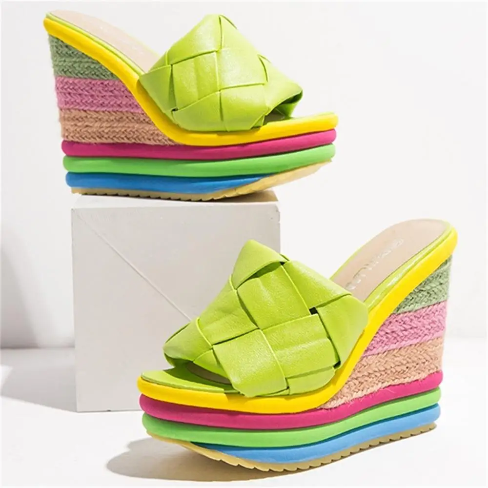 Туфли женские на танкетке, модные пикантные сандалии с радужной конопляной платформой, обувь в римском стиле, летние Тапочки