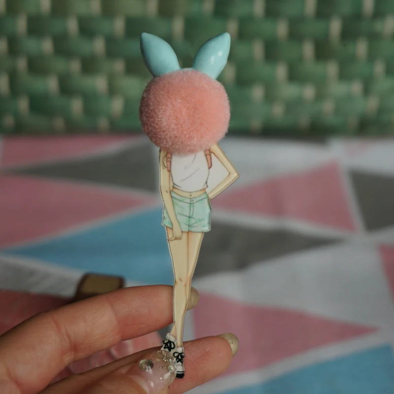 Акриловые значки с кроличьими ушками для женщин и девочек, милая забавная модель Броши 2,5 см, шерстяной шариковый воротник, булавка на лацкан, подарки