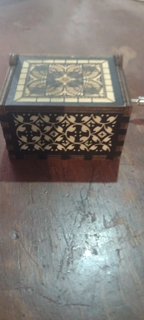 Очень хорошая музыкальная шкатулка! Помещается в ладонь вашей руки. Дизайн приятный, музыка звучит хорошо, хотя и неузнаваема, песня не та, которую вы 'ожидаете. Пришло довольно быстро! Заказал на дек 5 и пришел Дек 22!