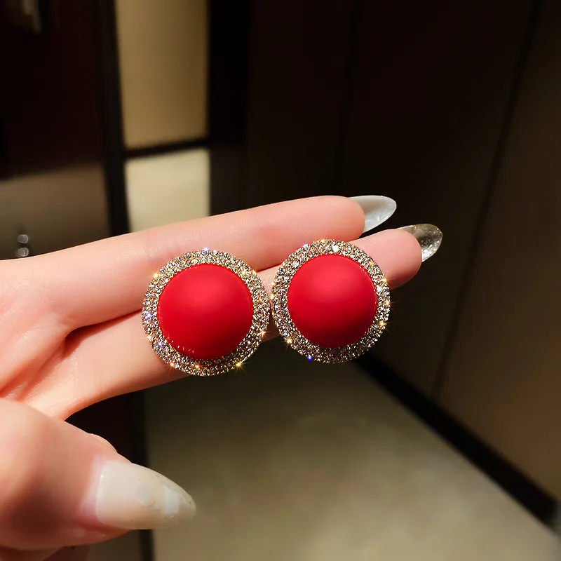 AOMU S925 осенне-зимние корейские милые металлические красные серьг...