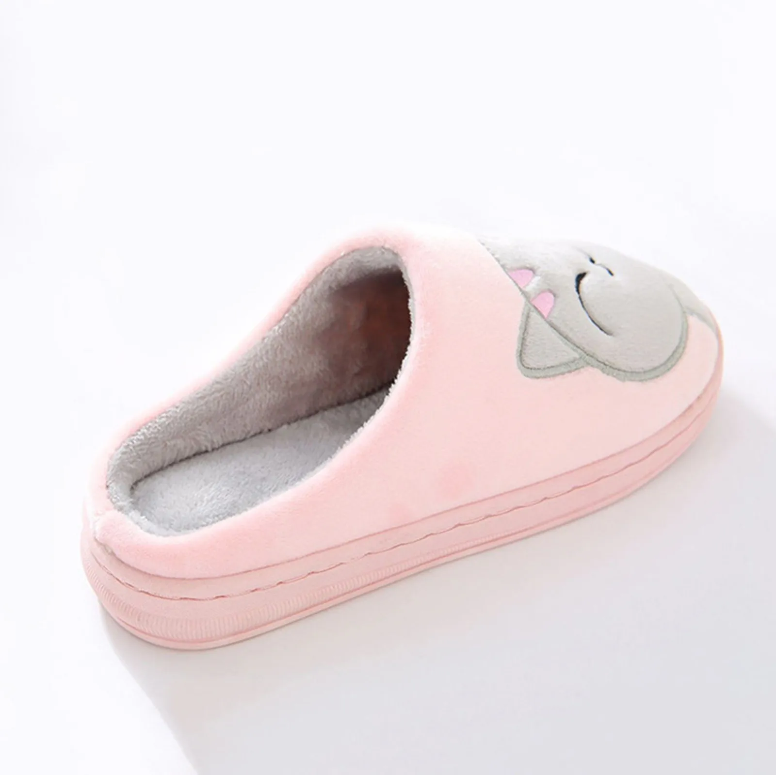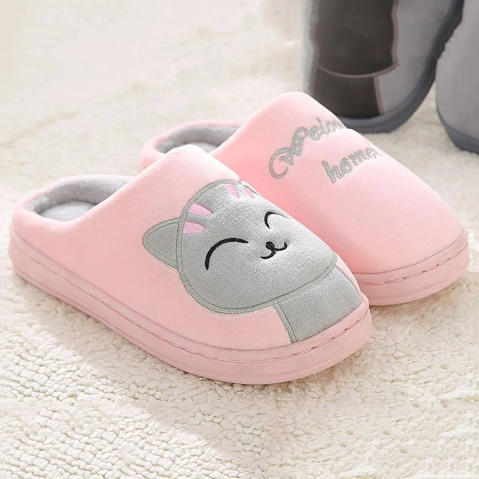 Зимние тапочки женские с милым мультяшным принтом, вышивкой, круглым носком, на плоской подошве, бархатные Тапочки, удобная домашняя обувь