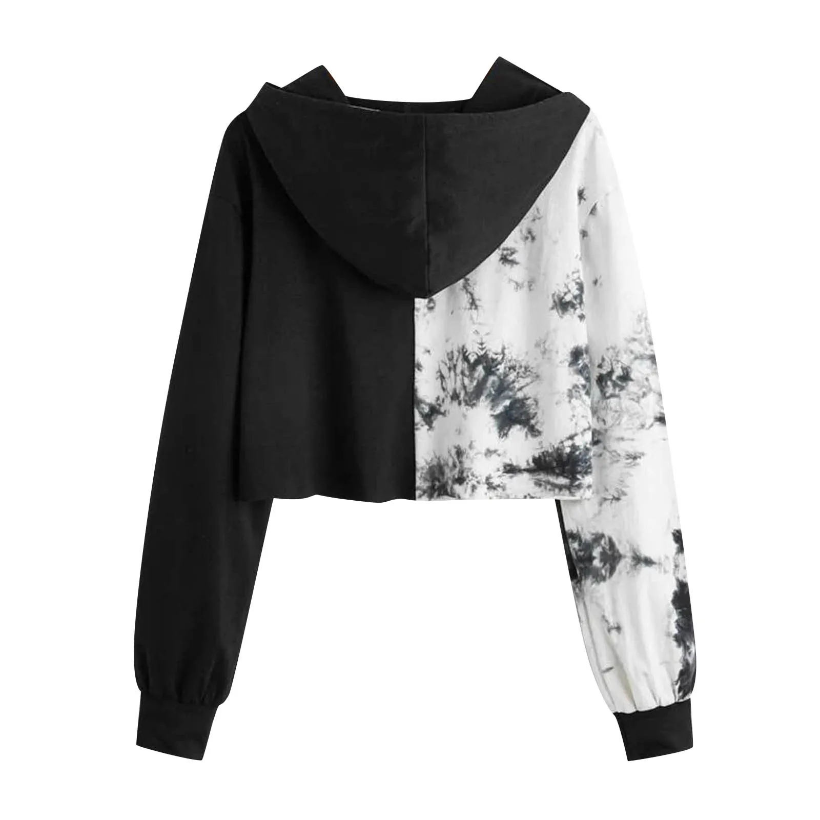 Женский Укороченный свитшот Harajuku с длинным рукавом и принтом тай-дай, укороченный топ, толстовки, пуловер, топ, блузка, толстовка, уличная одежда, новинка 2021