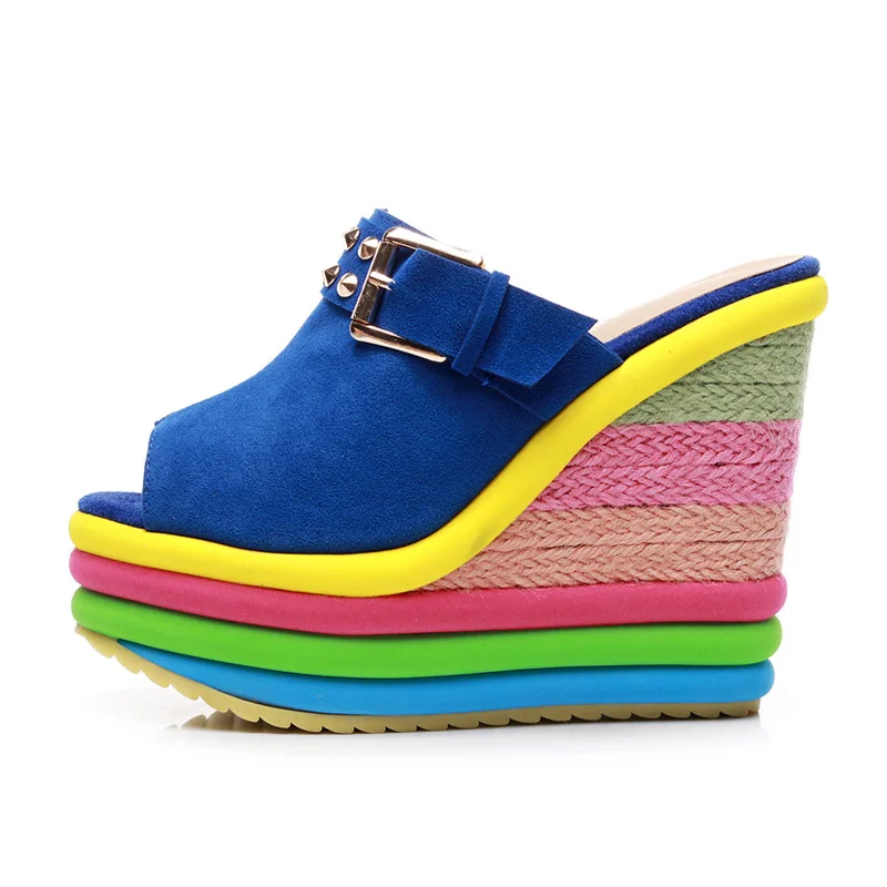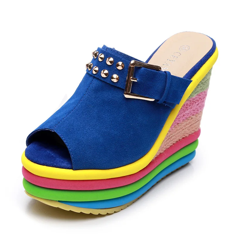 Женские сандалии на платформе, высокие шлепанцы, радужные, летняя о...