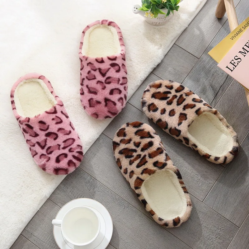 Домашние тапочки с мягкой подошвой для мужчин и женщин, Леопардовый принт, нескользящая обувь для спальни, теплые тапочки