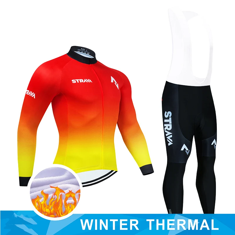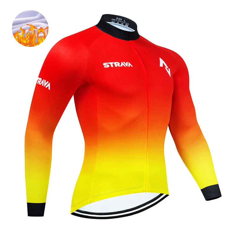 2022 команда STRAVA зимняя велосипедная трикотажная нагрудная одежда для горных велосипедов Мужская одежда для велоспорта термальная флисовая велосипедная одежда