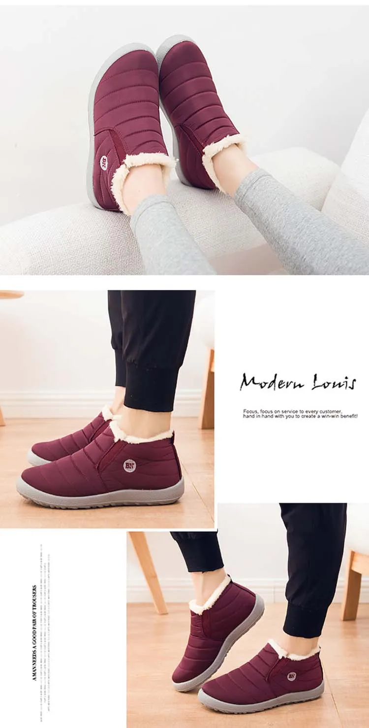 Женские кроссовки без шнуровки, плюшевые водонепроницаемые, теплая ...