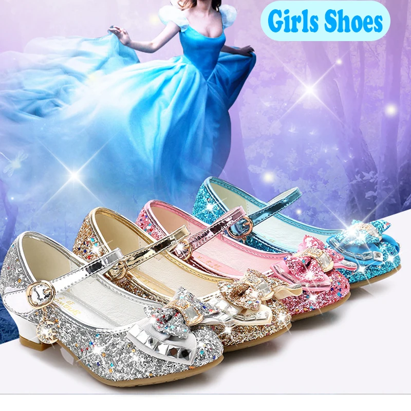 Туфли для девочек с бантом-бабочкой, синие, розовые, серебристые детские кожаные туфли принцессы для девочек, повседневные блестящие туфли с цветами на высоком каблуке, 2021