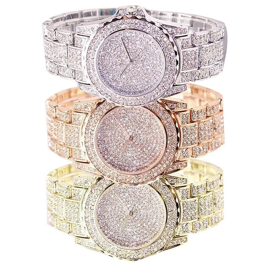 Женские часы в подарок, модные часы, женские роскошные круглые кварцевые часы, наручные часы для женщин, блестящие золотые бриллианты