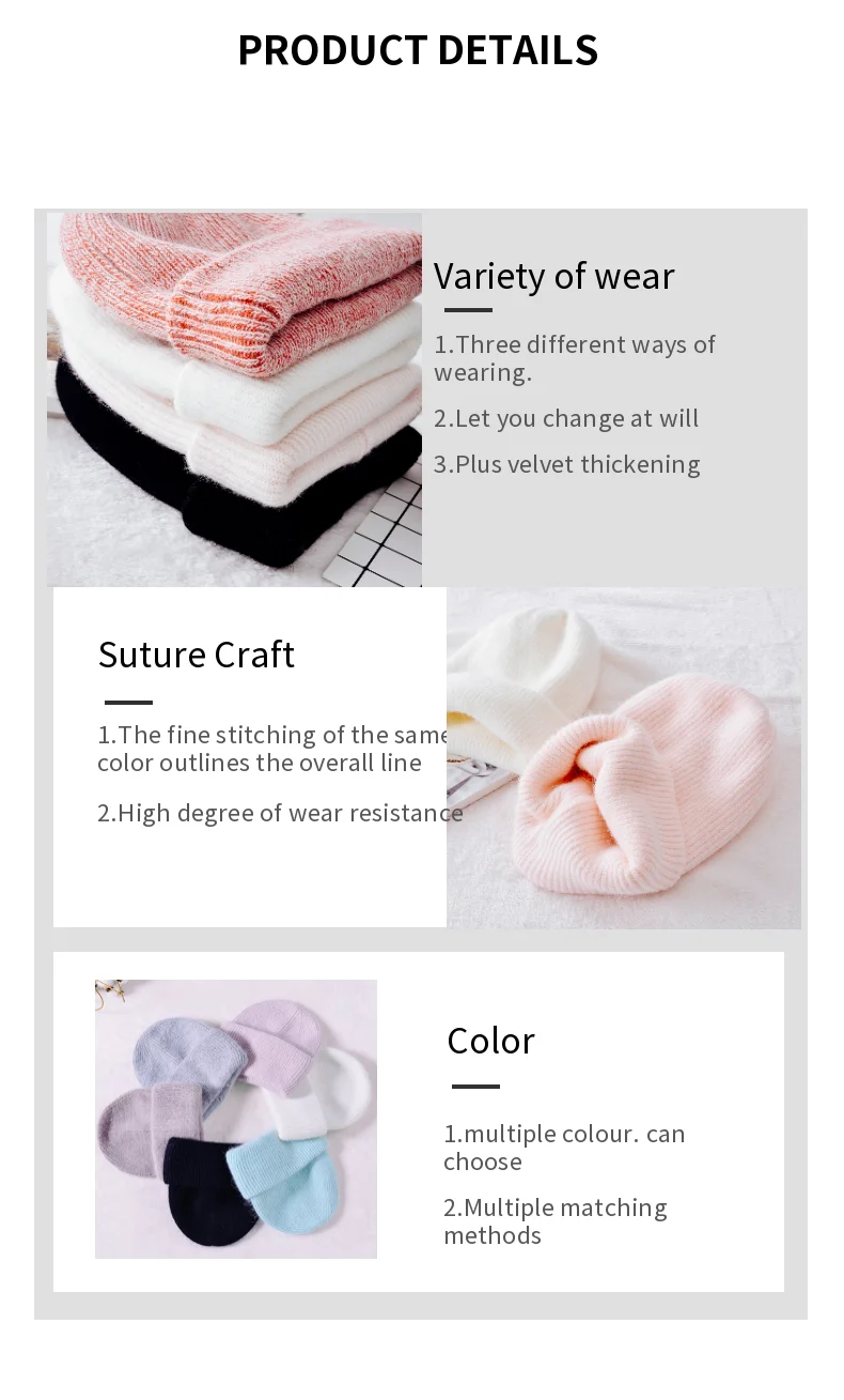 Шапка женская шерстяная, однотонная, вязаная, с кроличьим мехом, зима 2021