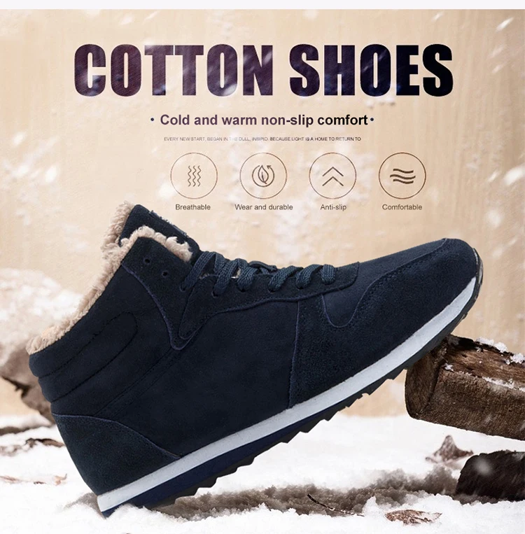 Ботинки мужские зимние хлопковые, Нескользящие, на шнуровке, легкие...