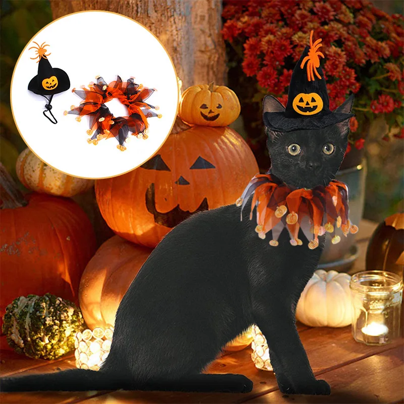 Один комплект ошейник для Хэллоуина и шляпа ведьмы для домашних жив...