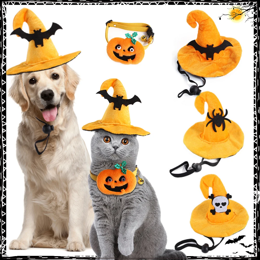 Ошейник на Хэллоуин, шляпа ведьмы для домашних собак, кошек, забавные аксессуары для наряда для праздничных вечеринок, поводок для собак, праздничное украшения для косплея