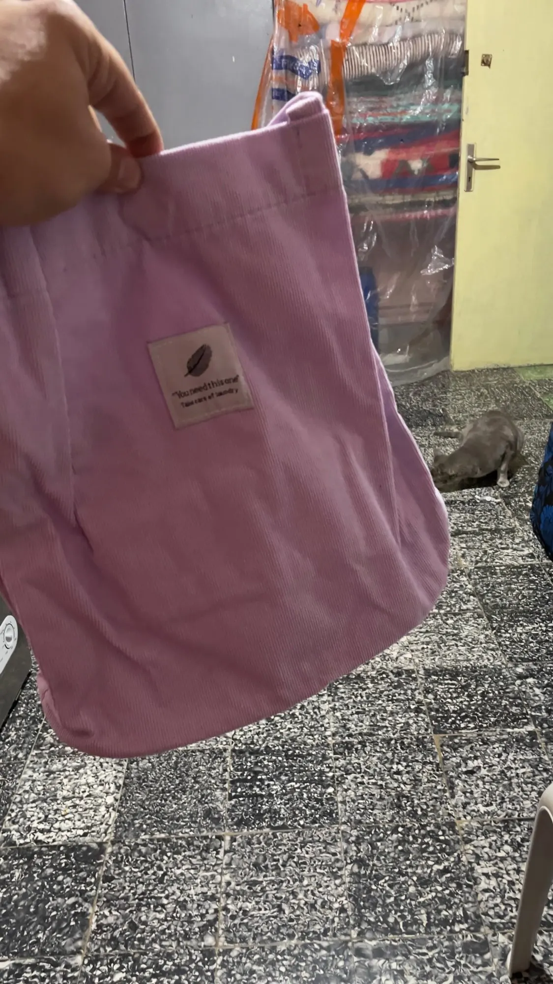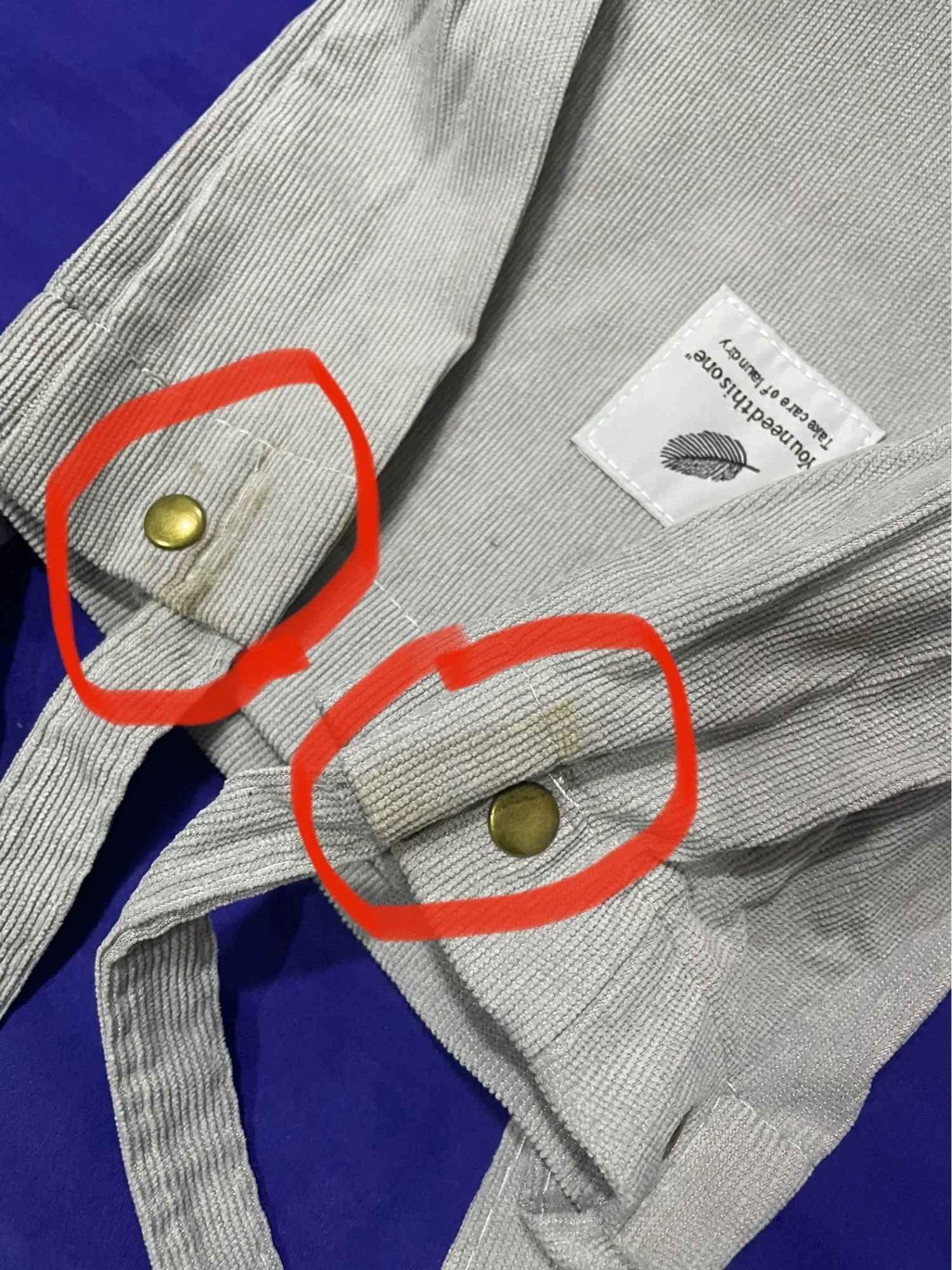 Happy about the bag. Thick material. Good quality for the price. Happy about it.. but received the bag with some dirts. Wish they would go after laundry.. otherwise, all good. Inner compartment and a single button to close the bag.. very nice:)