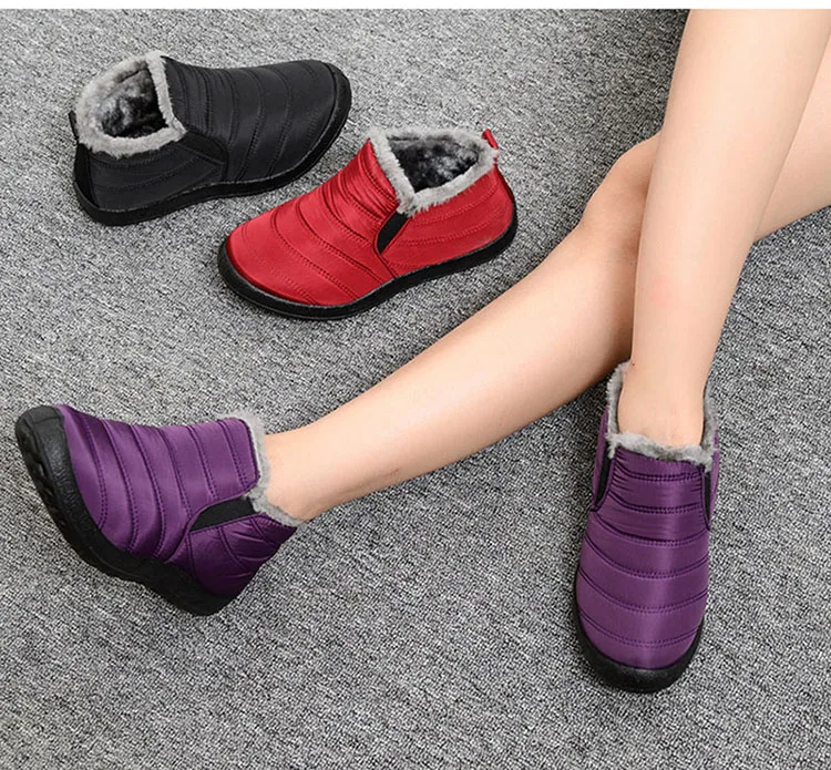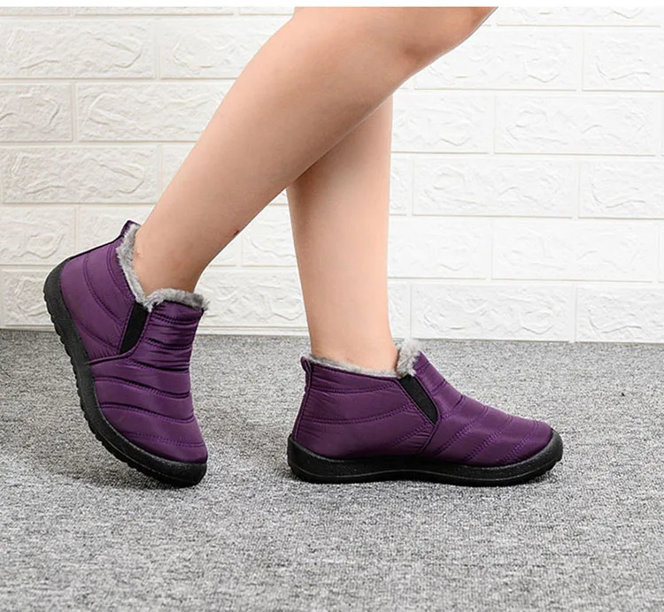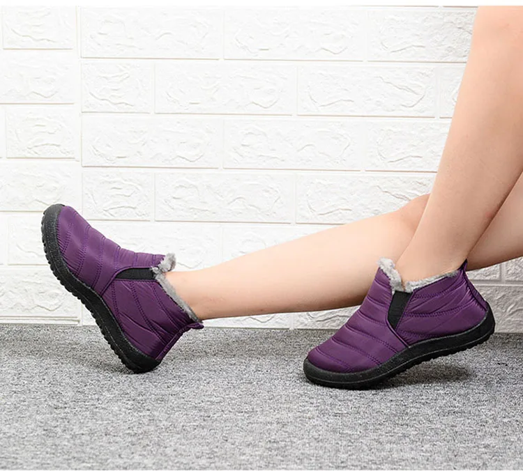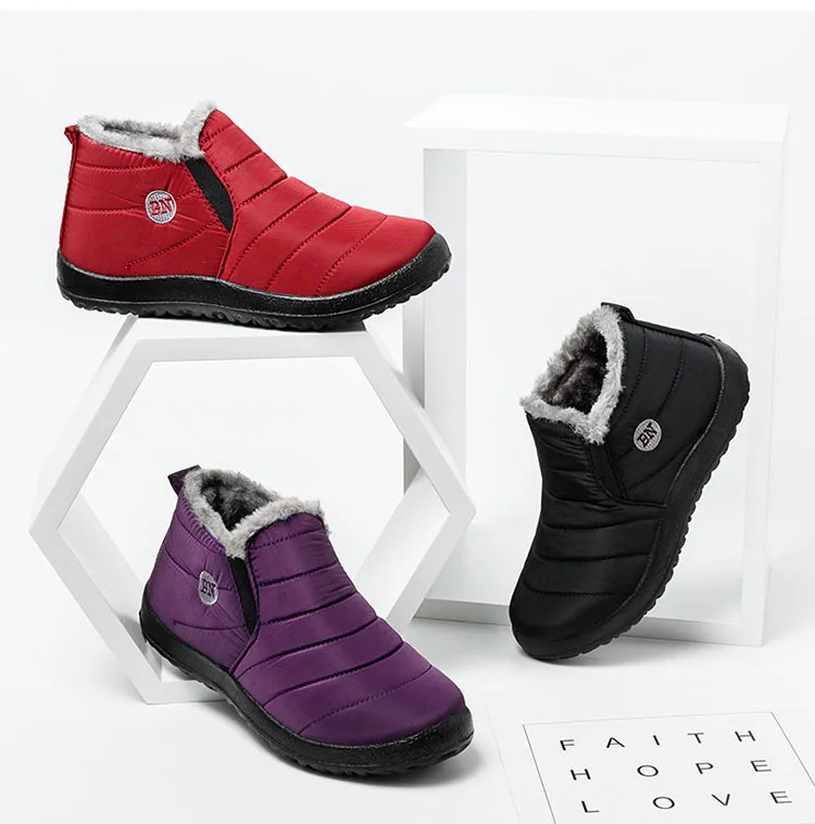Женские кроссовки без шнуровки, плюшевые водонепроницаемые, теплая ...
