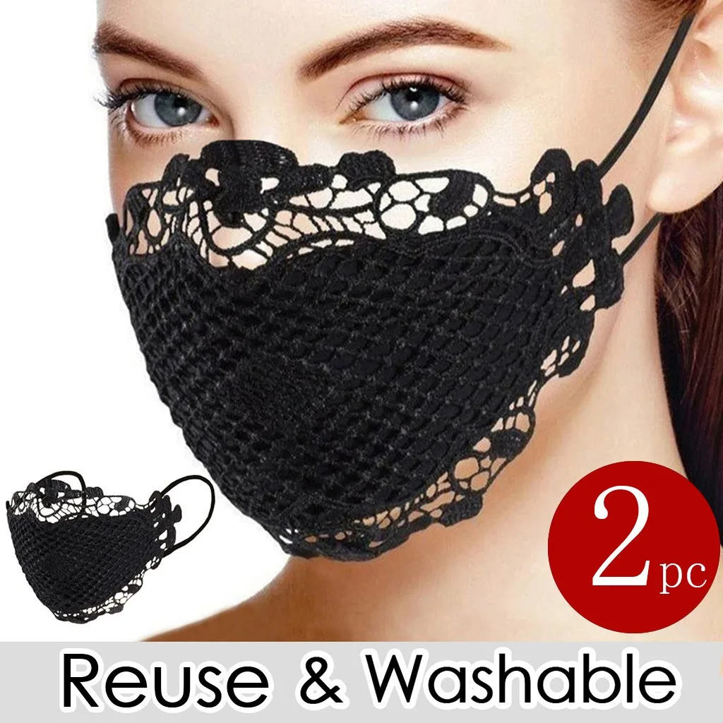 2 шт. деликатная Кружевная аппликация, дышащая защита для лица, повторное использование маски