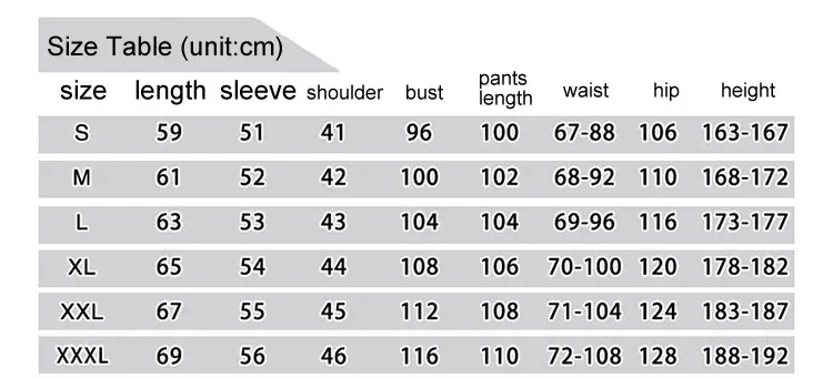 Таблица размеров (единица измерения: см, 1 дюйм = 2,54 см)
