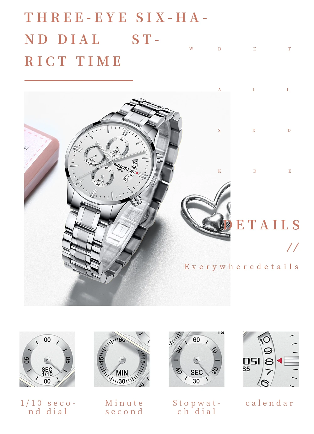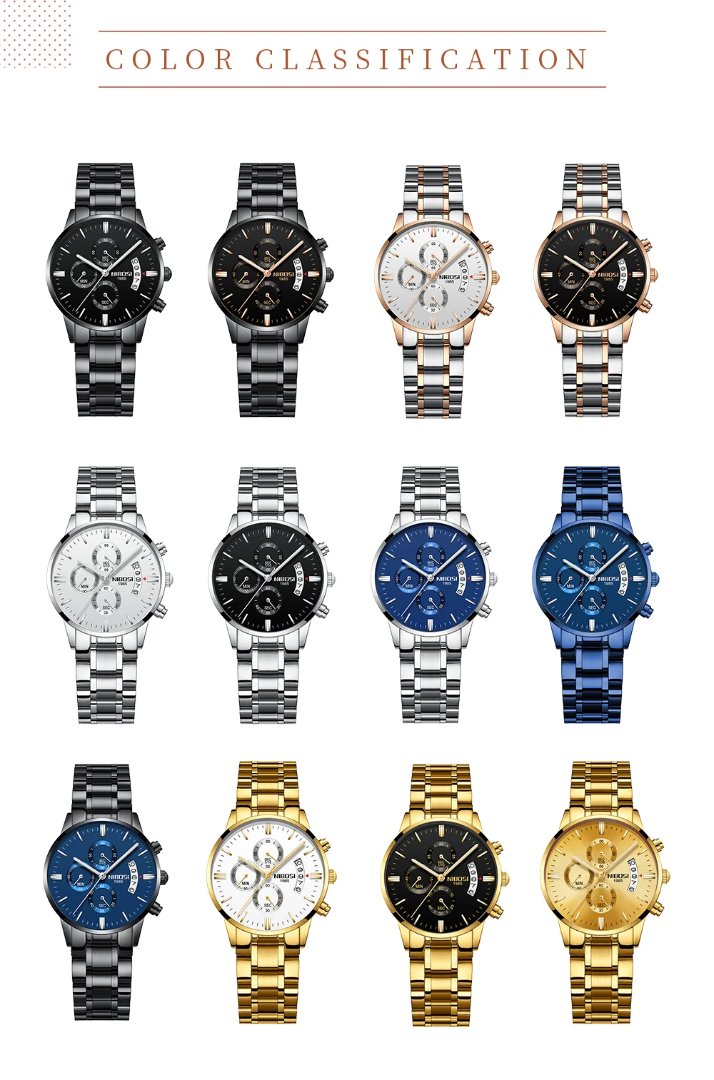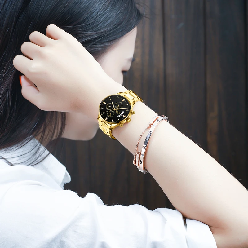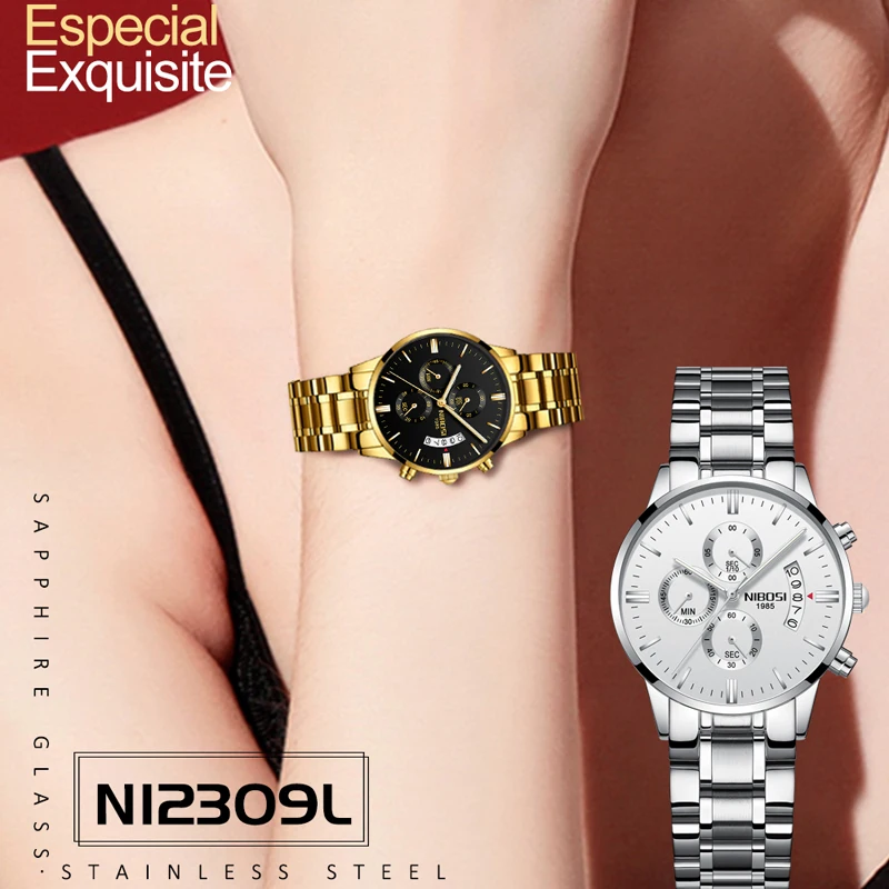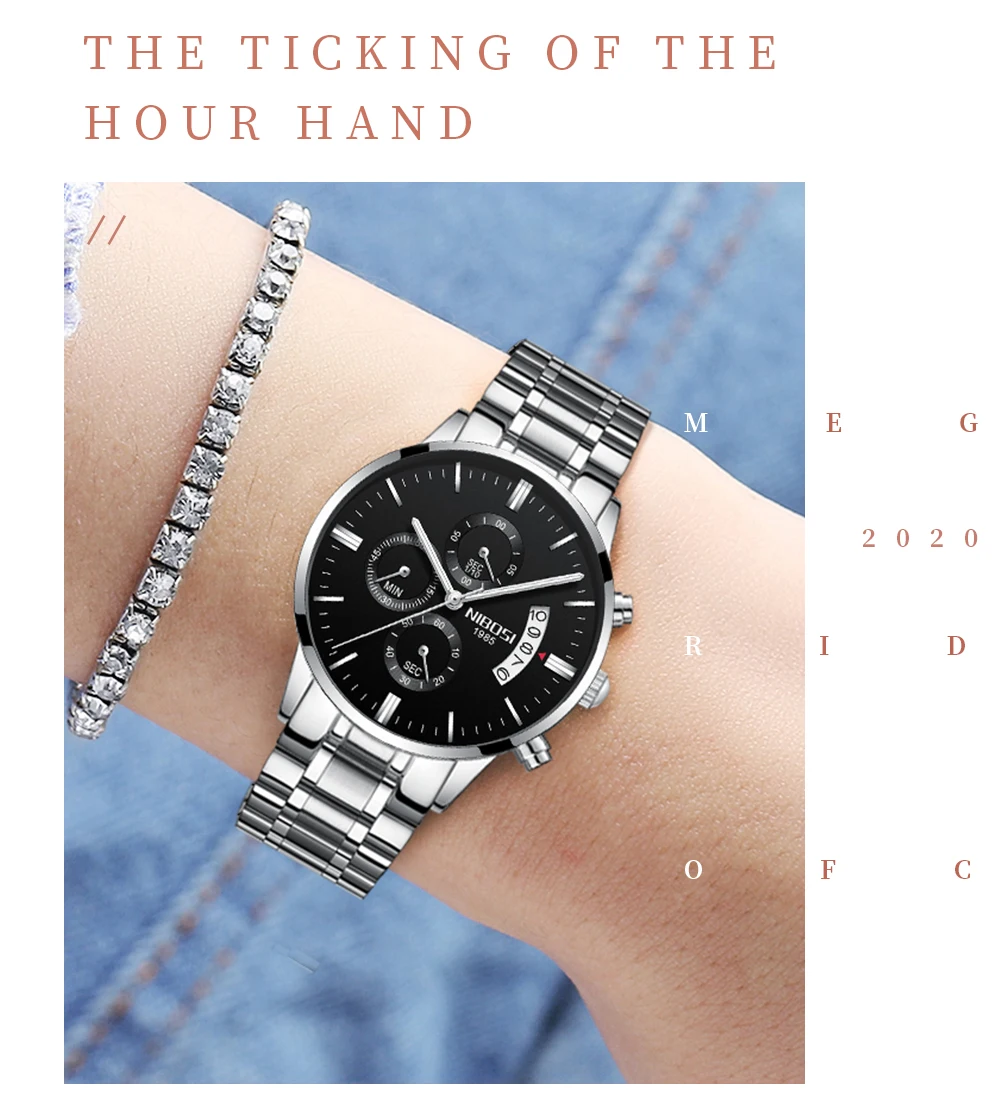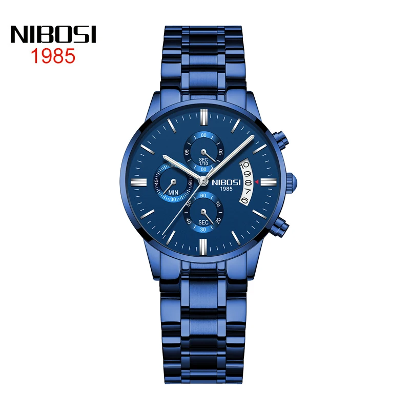 Часы наручные NIBOSI женские кварцевые, деловые брендовые Роскошные с хронографом, синие
