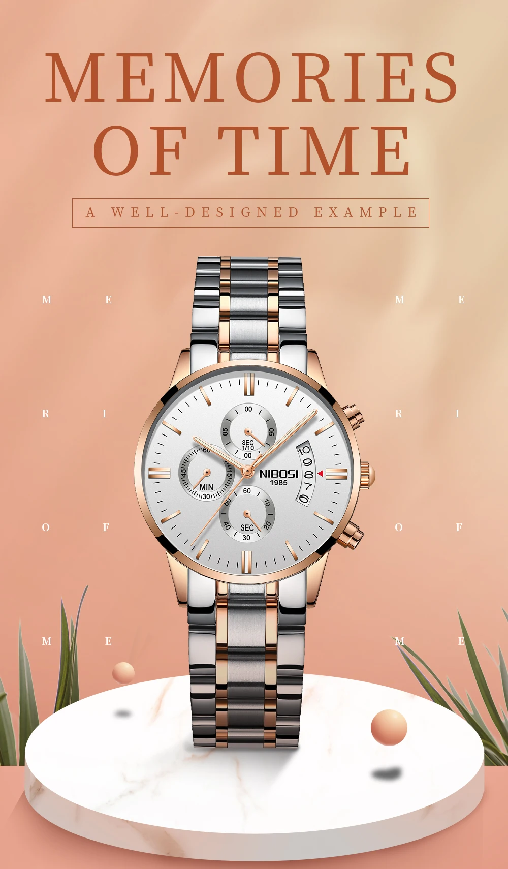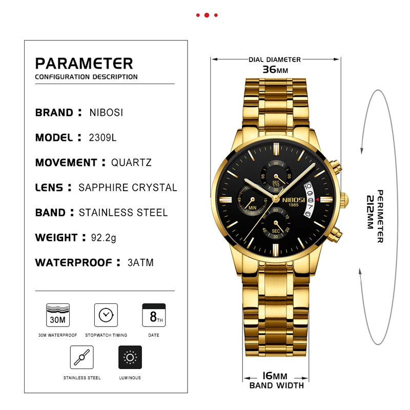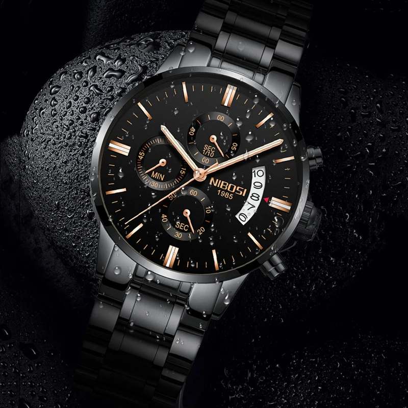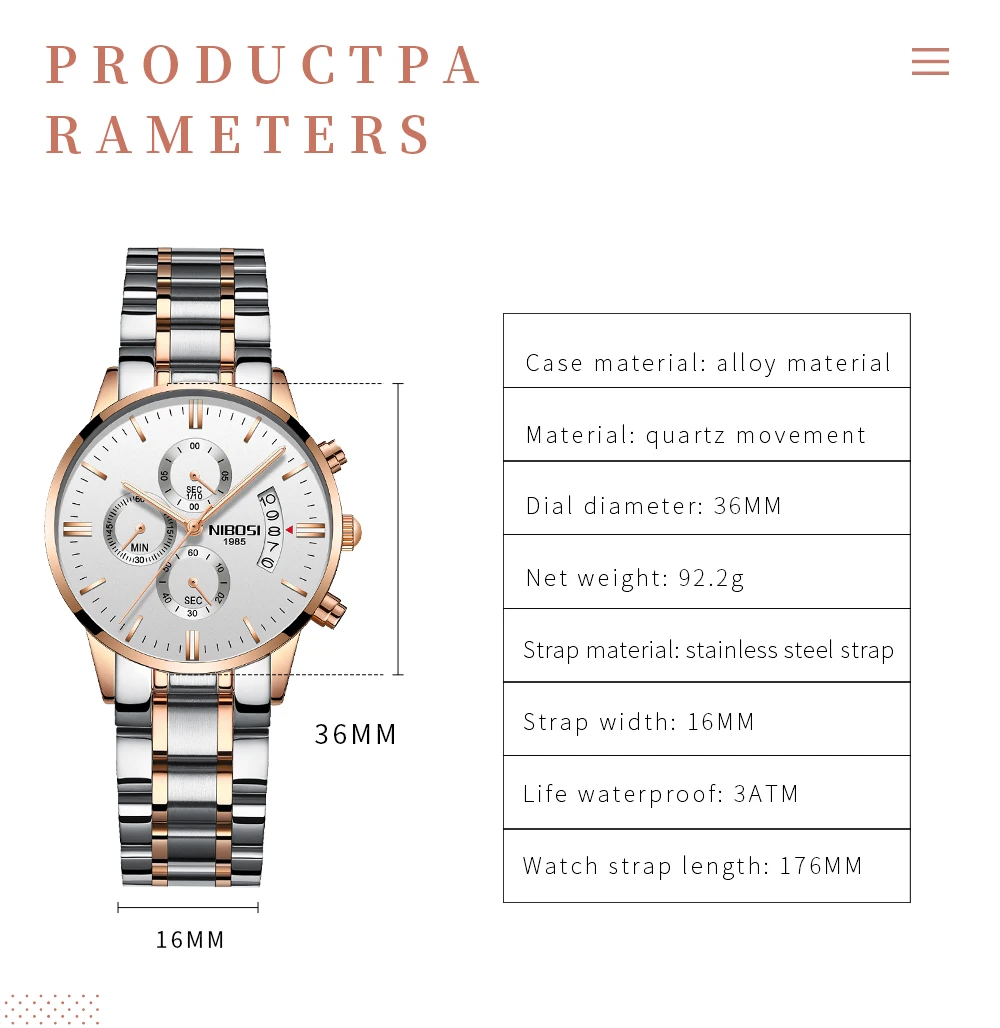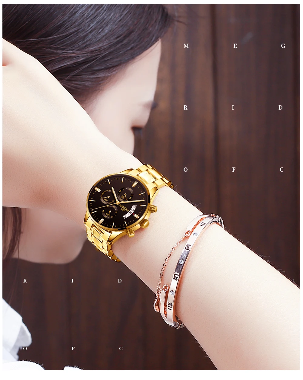 Часы наручные NIBOSI женские кварцевые, деловые брендовые Роскошные с хронографом, синие