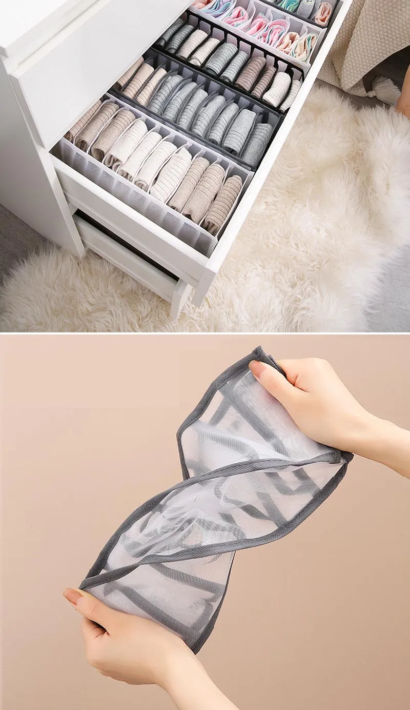 Храните свои товары с ним быстро и аккуратно, что позволяет легко найти ваш товарЛегко складывается, когда не используется, для экономии местаИзготовлен из нейлоновой сетки, без запаха, моющийся и прочныйПодходит для гардероба, гардероба или ящиковСортируйте нижнее белье, бюстгальтеры, носки, галстуки и т. д.