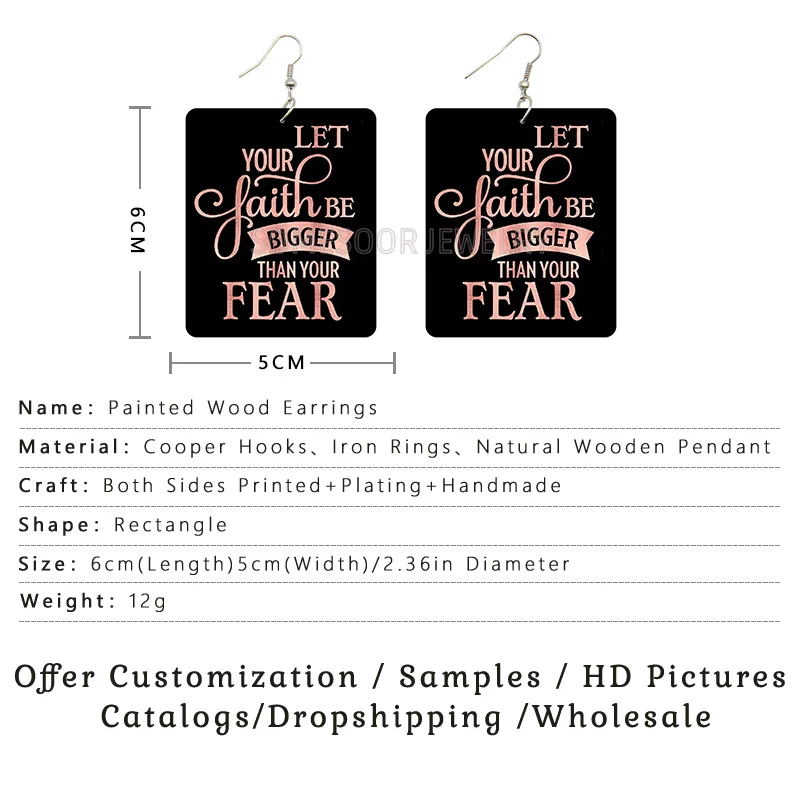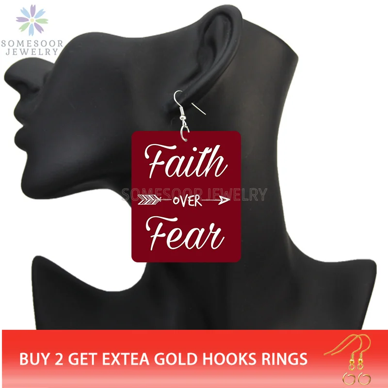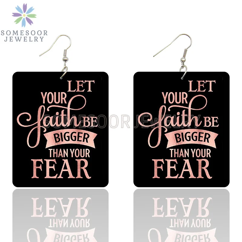 SOMESOOR Faith Over Tear, мощные деревянные серьги-подвески с принтом, Черные Квадратные геометрические висячие украшения для женщин, подарки