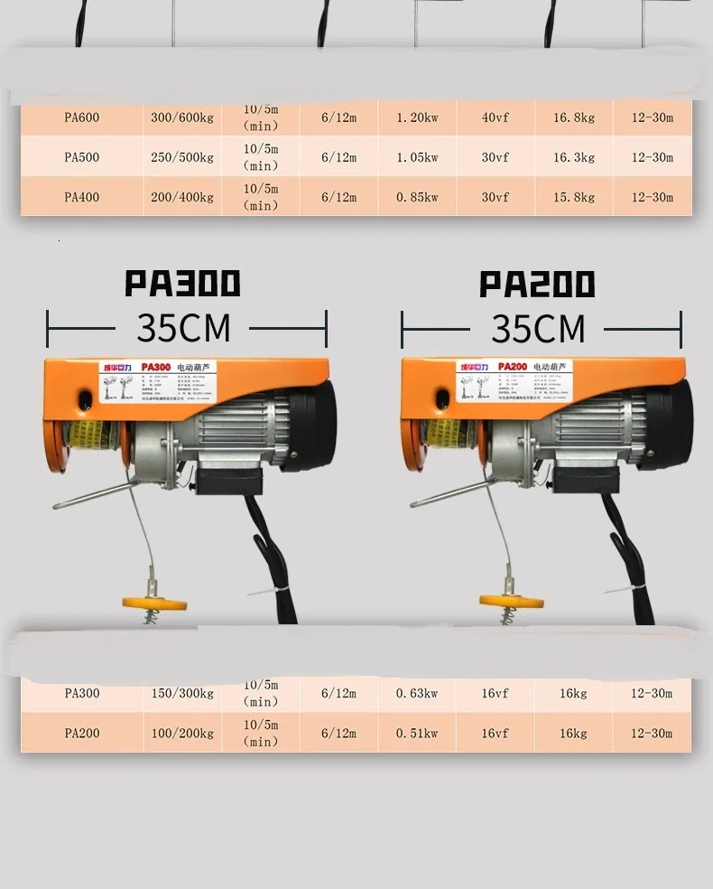 Электрический подъемник, горячая распродажа, 220 В, PA200-400kg, 12-20 м, небольшой кран, электрическая лебедка, поддержка, беспроводной пульт дистанционного управления