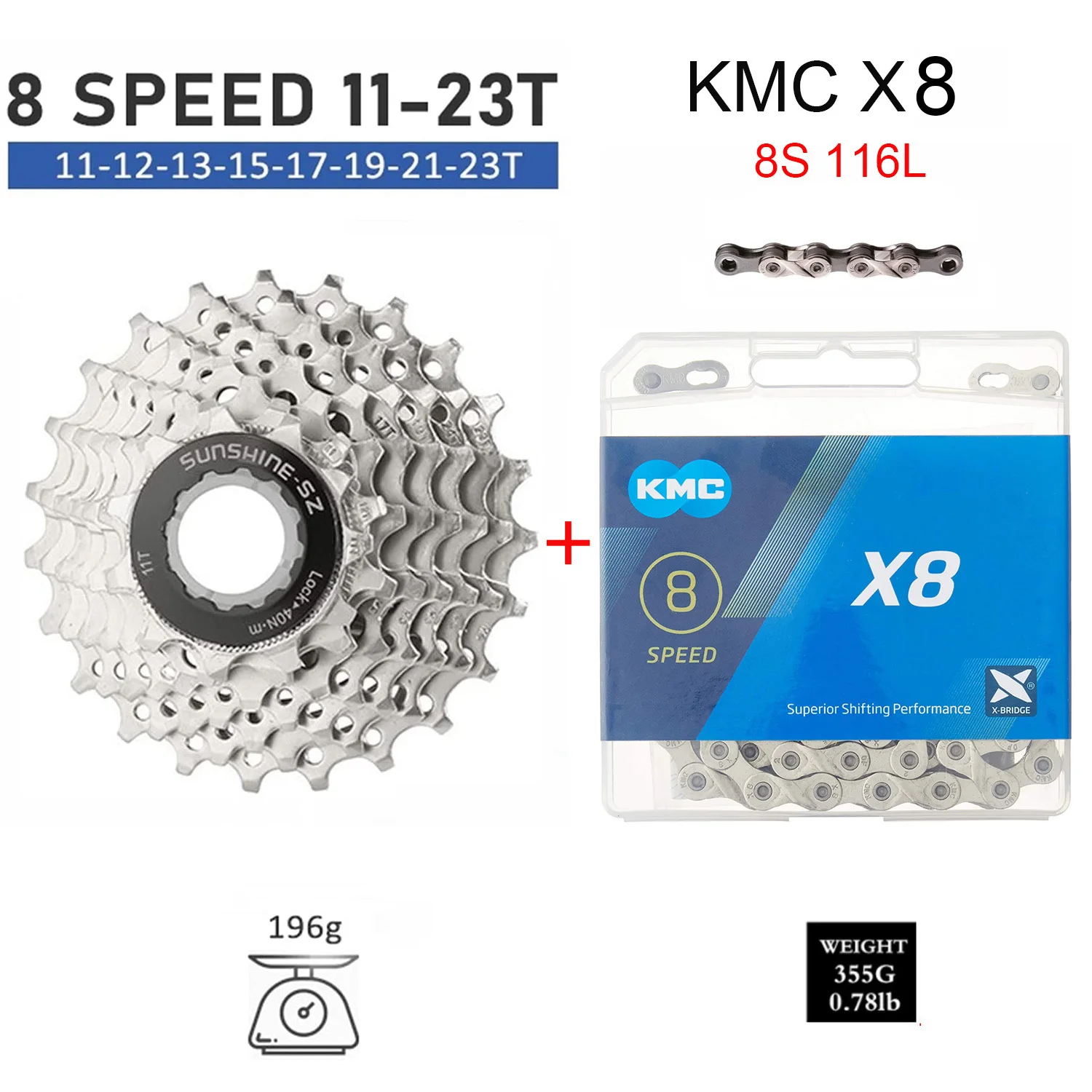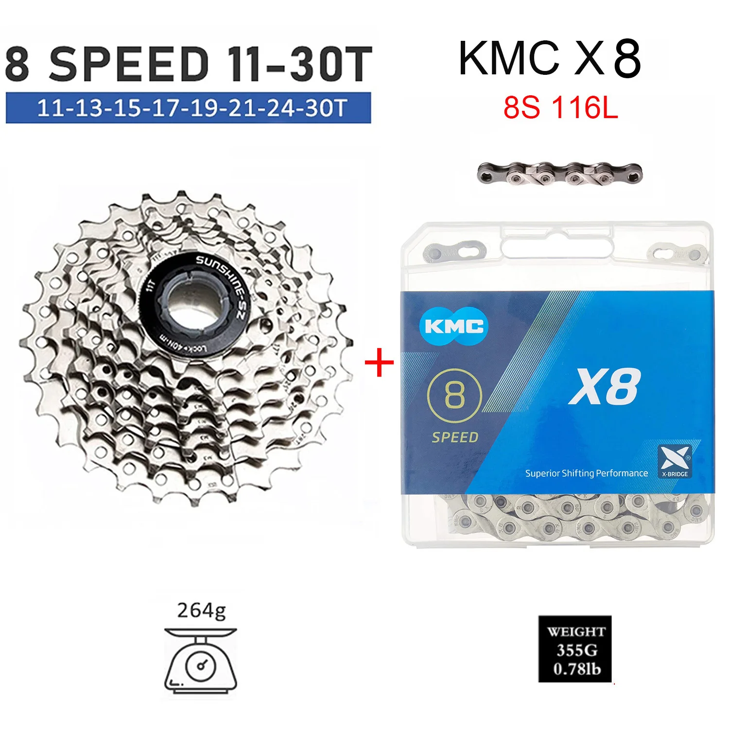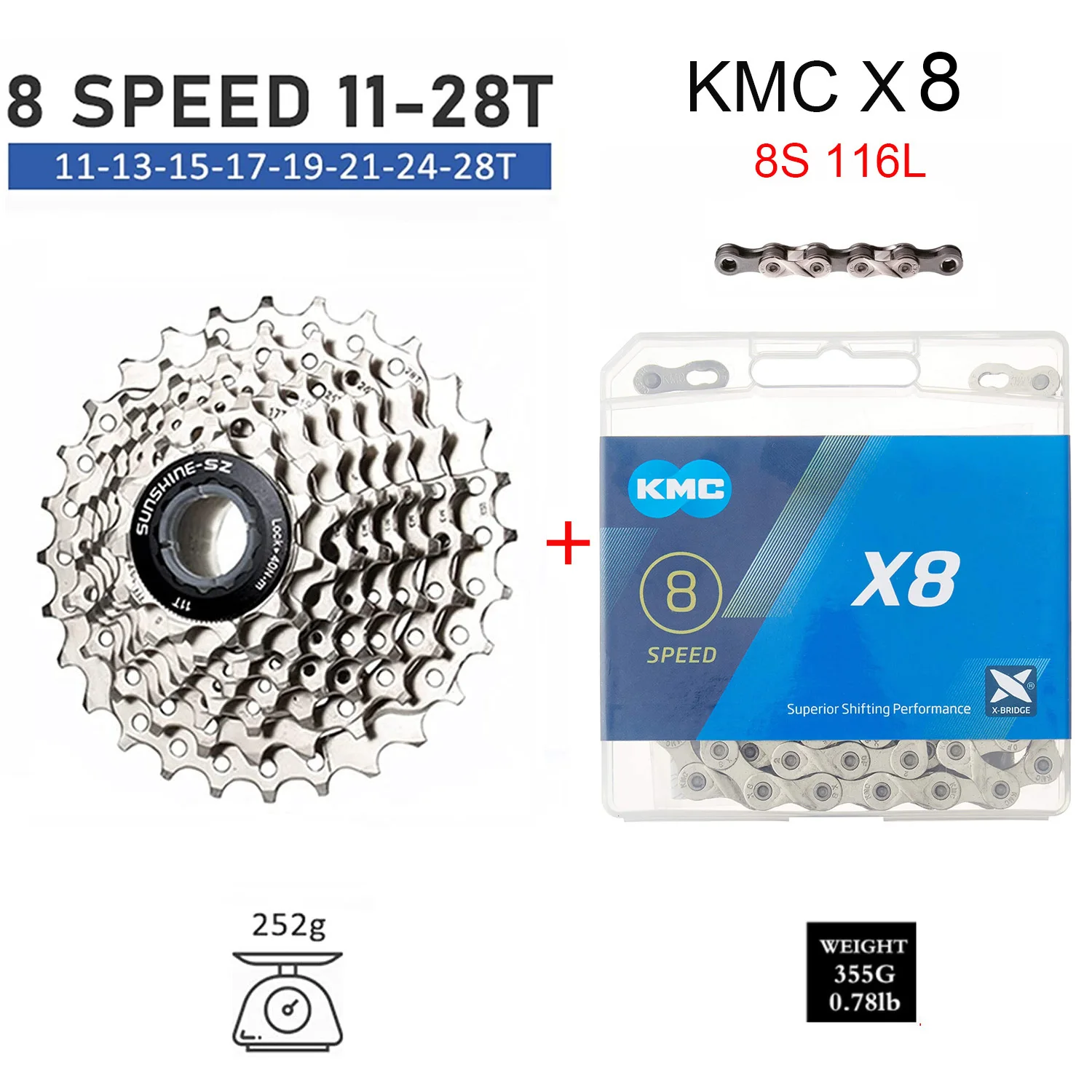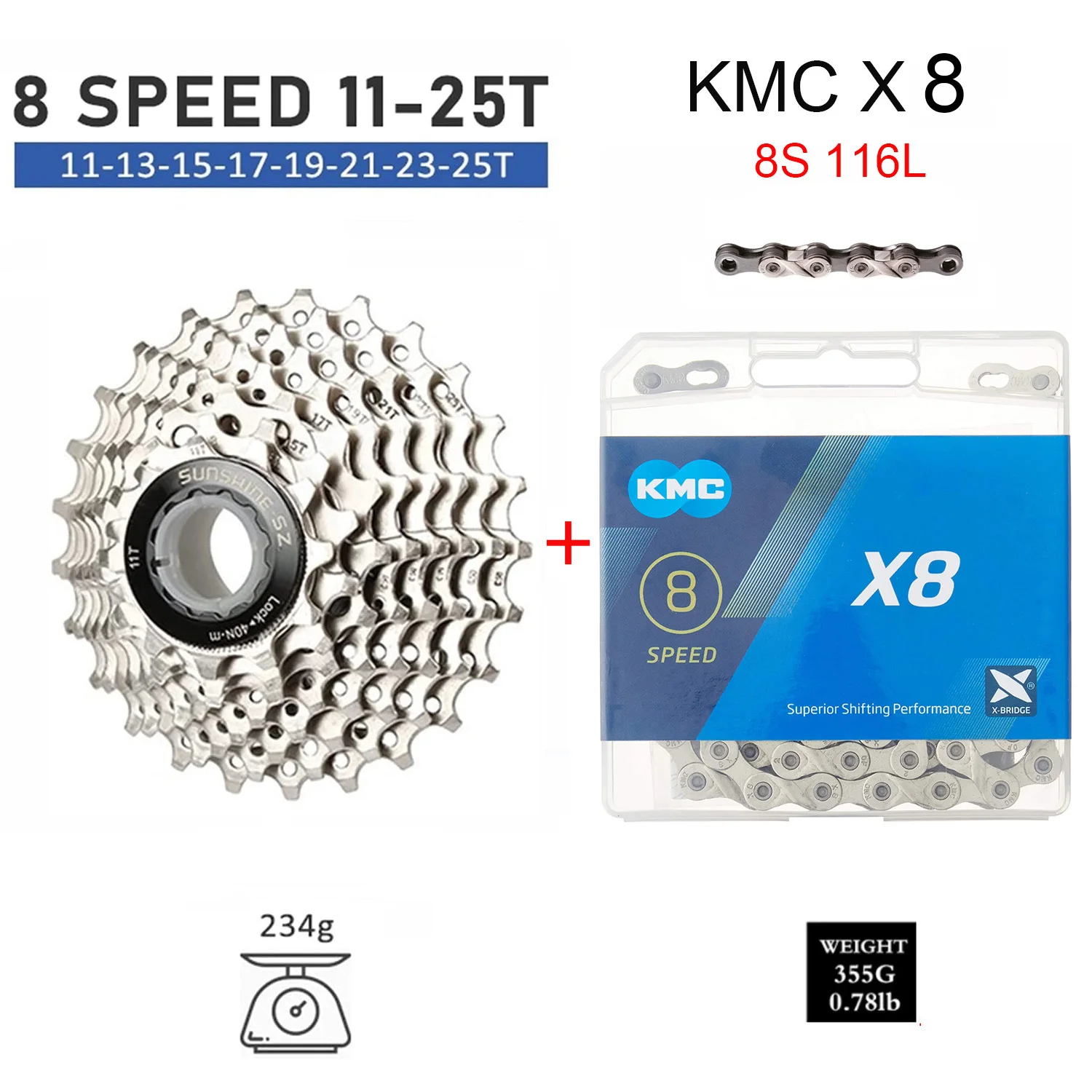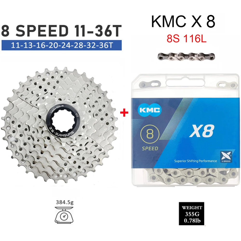 Велосипедная кассета Sunshine RoadMTB 8 в, велосипедный маховик KMC X8 8 S 116L цепь 25T 28T 32T 36T 40T 42T 8 скоростная корона для Shimano