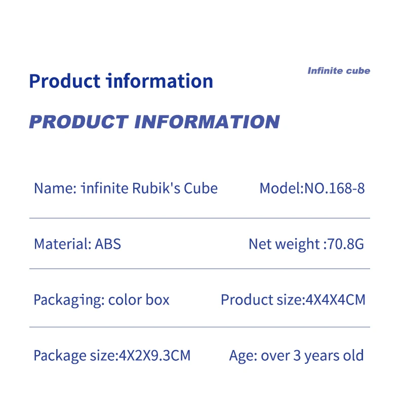 Описание:1.Лучшая игрушка для раздражения: ошеломленная ручная игрушка. Снимайте напряжение и беспокойство во время выполнения задач или ожидания. Помогает вам фокусироваться на задачах, уменьшая раздражающие вредные привычки, такие как кусание ногтей и перья, трясущиеся ноги и треснувшие суставы. Отличный отдых. Игрушки для детей, подростков и взрослых. Телефонные стрессы, аутизм, увеличение, бросить курить, не спать после вождения в течение длительного времени, помочь сконцентрироваться и глубоко подумать.2.Терапевтический: идеальная компактная игрушка для детей и людей, страдающих аутизмом, СДВГ и гипертиреозом. Помогает облегчить гиперактивность. Также идеально подходит для людей с проблемами рук и пальцев. Помогает улучшить движение и чувствительность рук и пальцев.3.Портативная Игрушка карманного размера: маленькая и очень легко носить с собой. Он также очень тихий, поэтому его можно играть в школах, на Конференции, автомобилях или автобусах. Возьмите его с собой и играйте в любое время и в любом месте.4.Интересные подарки. Этот бесконечный куб является идеальным подарком для детей и даже для взрослых в дни рождения, а также может использоваться в качестве наполнителя носков и Пасхальной корзины во время праздников. Они также очень подходят как вечерние аксессуары или аксессуары для мероприятий.Особенности:1. Высококачественные материалы премиум-класса.2. Не содержит Бисфенол А, нетоксичный.3. Сильная связь-гарантированно не отделяется, не трескается или не ржавеет.4. Может выдерживать непрерывные перепады, изгибы, капли и удары.