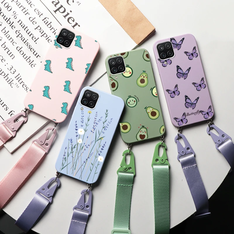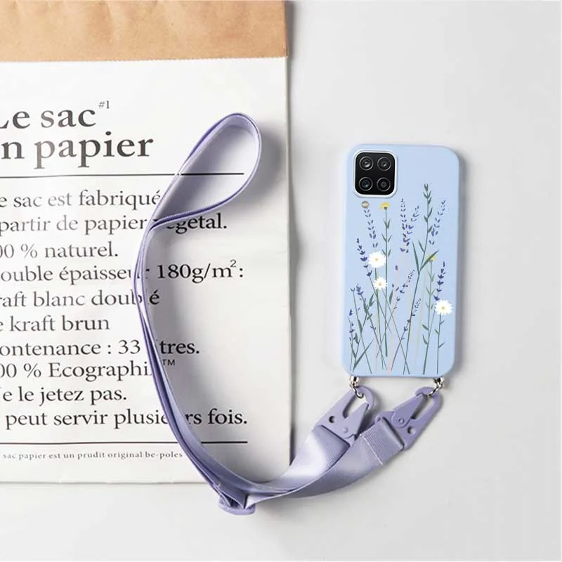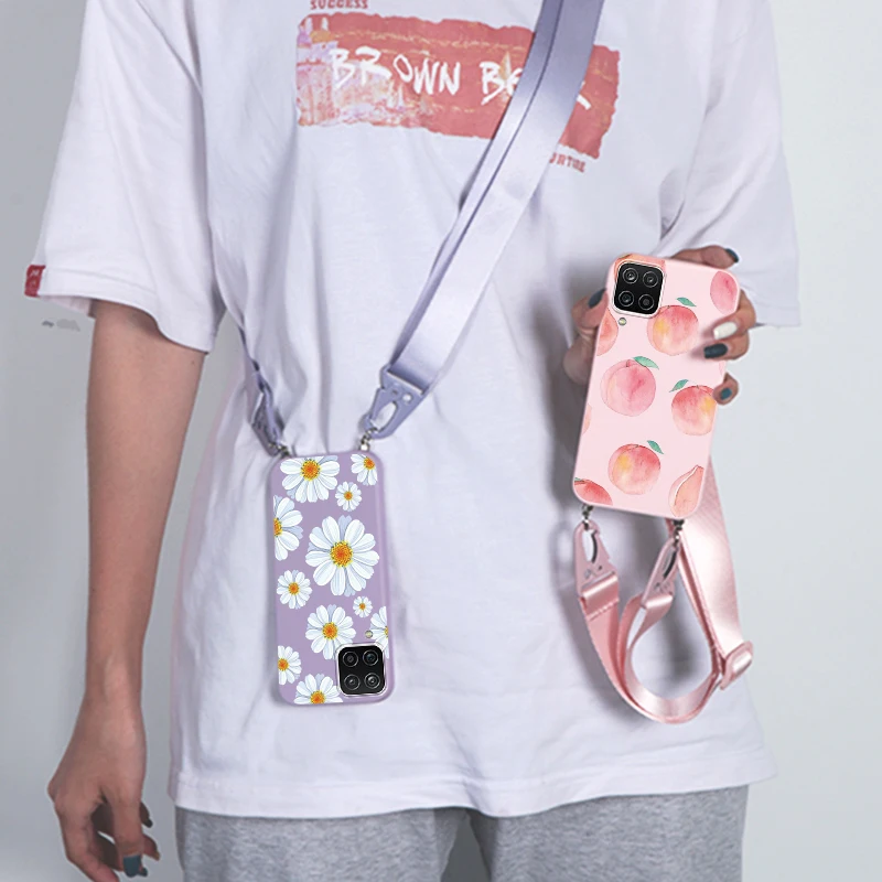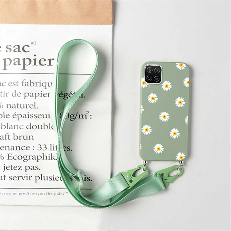 Чехол для Samsung Galaxy A12 M12 F12, силиконовый чехол из ТПУ с ремешком через плечо для Samsung A 12 M 12 F 12, шейный ремешок с цветами
