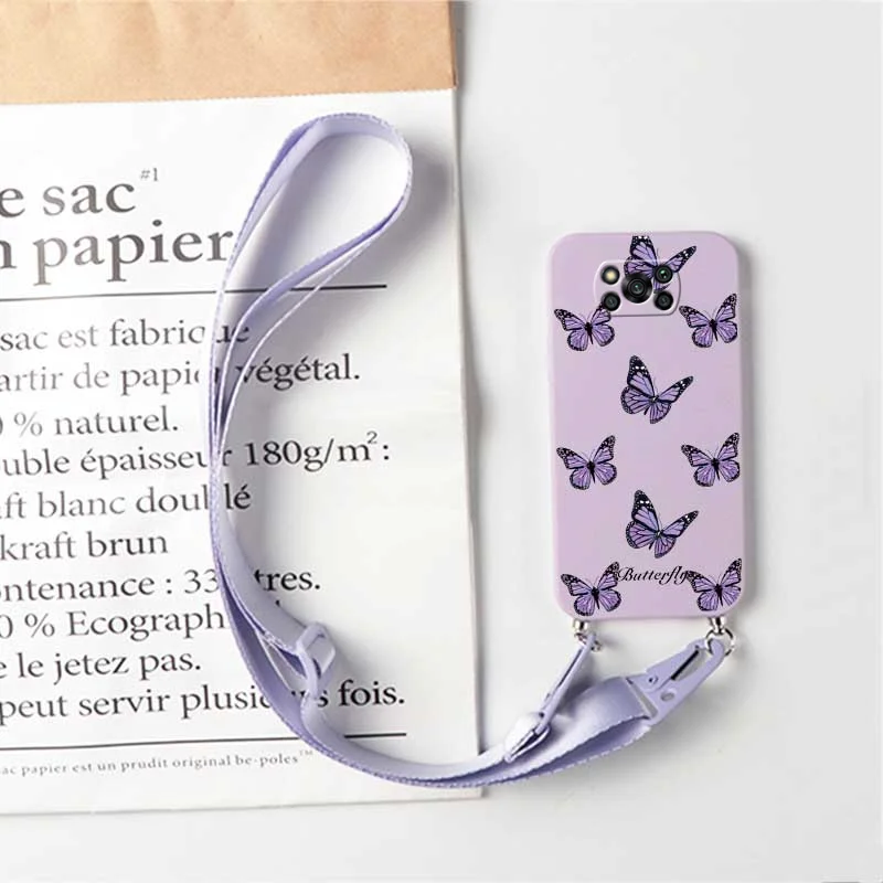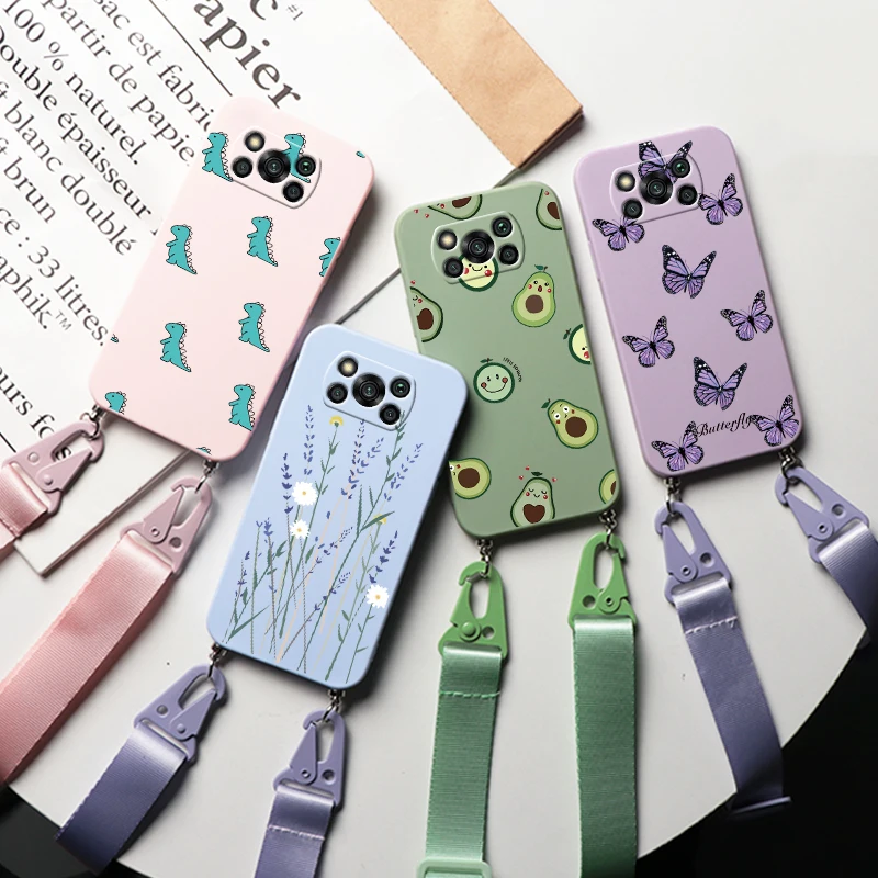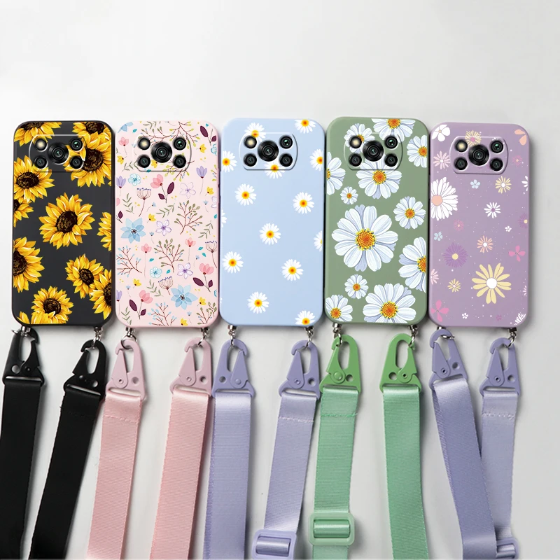 Чехол для Xiaomi Poco X3 NFC, ожерелье, шнурок, силиконовый чехол из ТПУ для Poco X3 POCOX3 X 3 NFC 6,67 дюйма, цветочный ремешок, шнур, задняя крышка