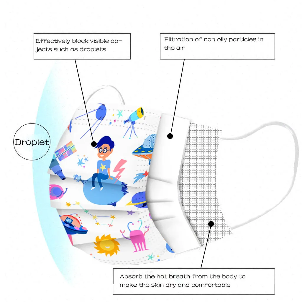Быстрая доставка, 50 шт., детская маска, коробка, детская одноразовая маска с мультипликационным принтом, 3 слоя, детский фильтр, гигиеническая плотная маска для рта для лица