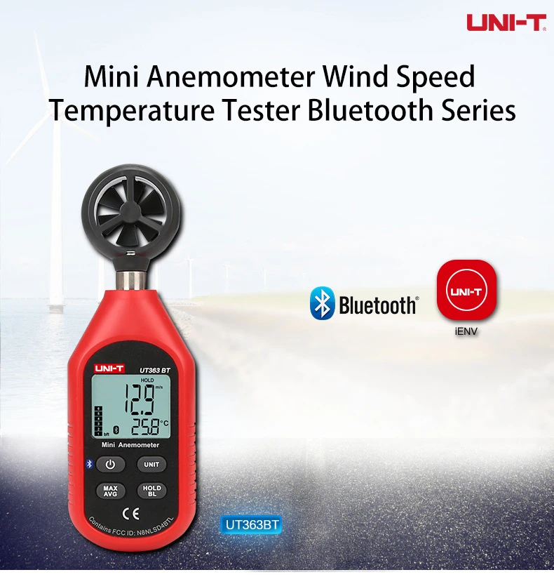 Мини цифровой Bluetooth Анемометр UNI-T UT363BT, Ручной цифровой эргономичный термометр, ветромер, Модернизированный от UT363