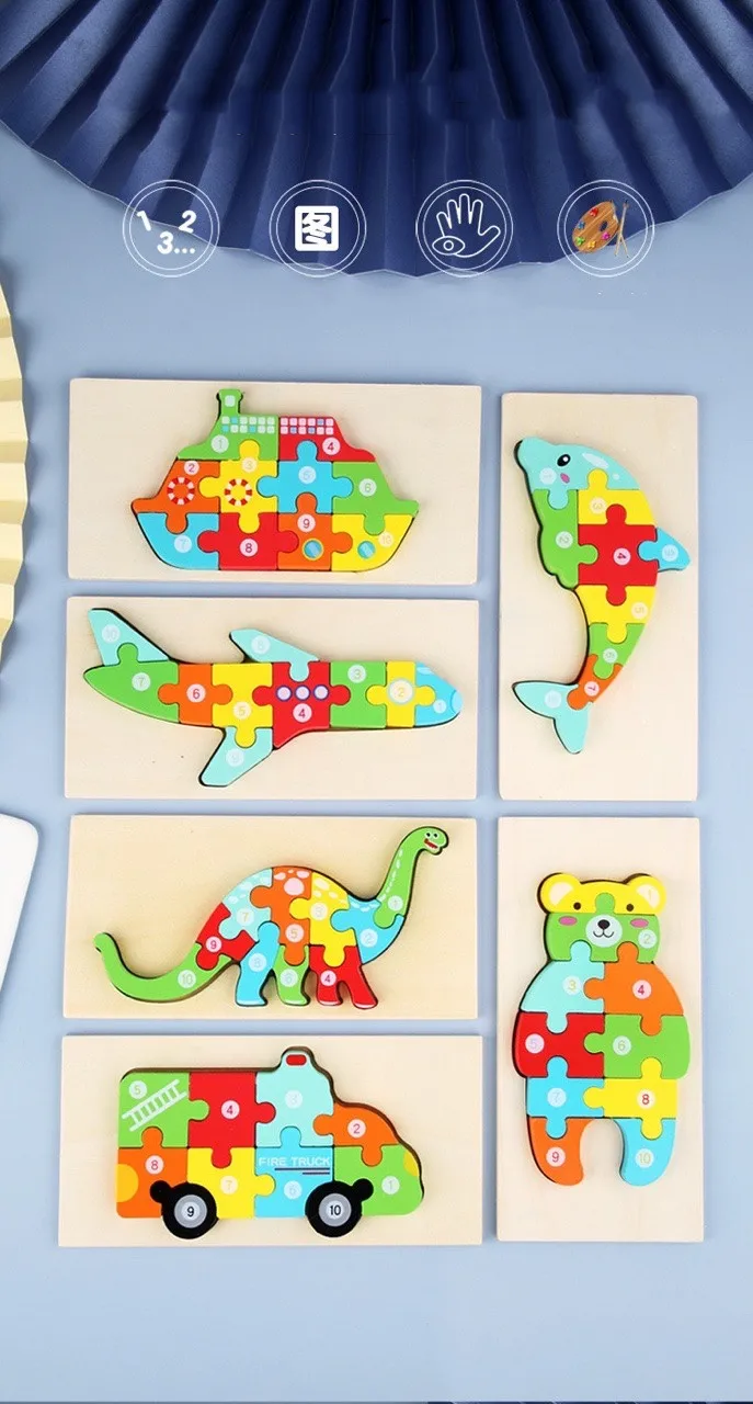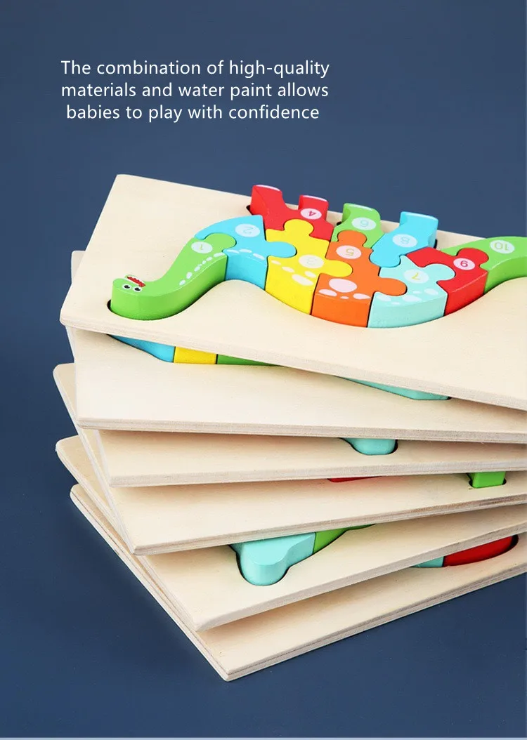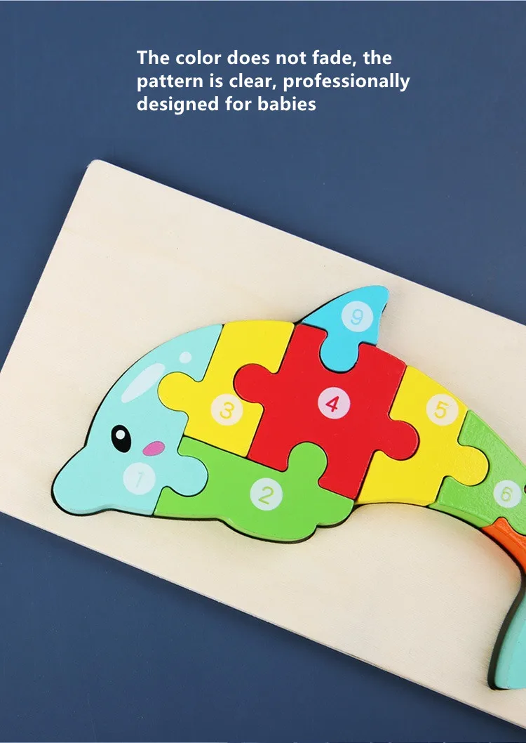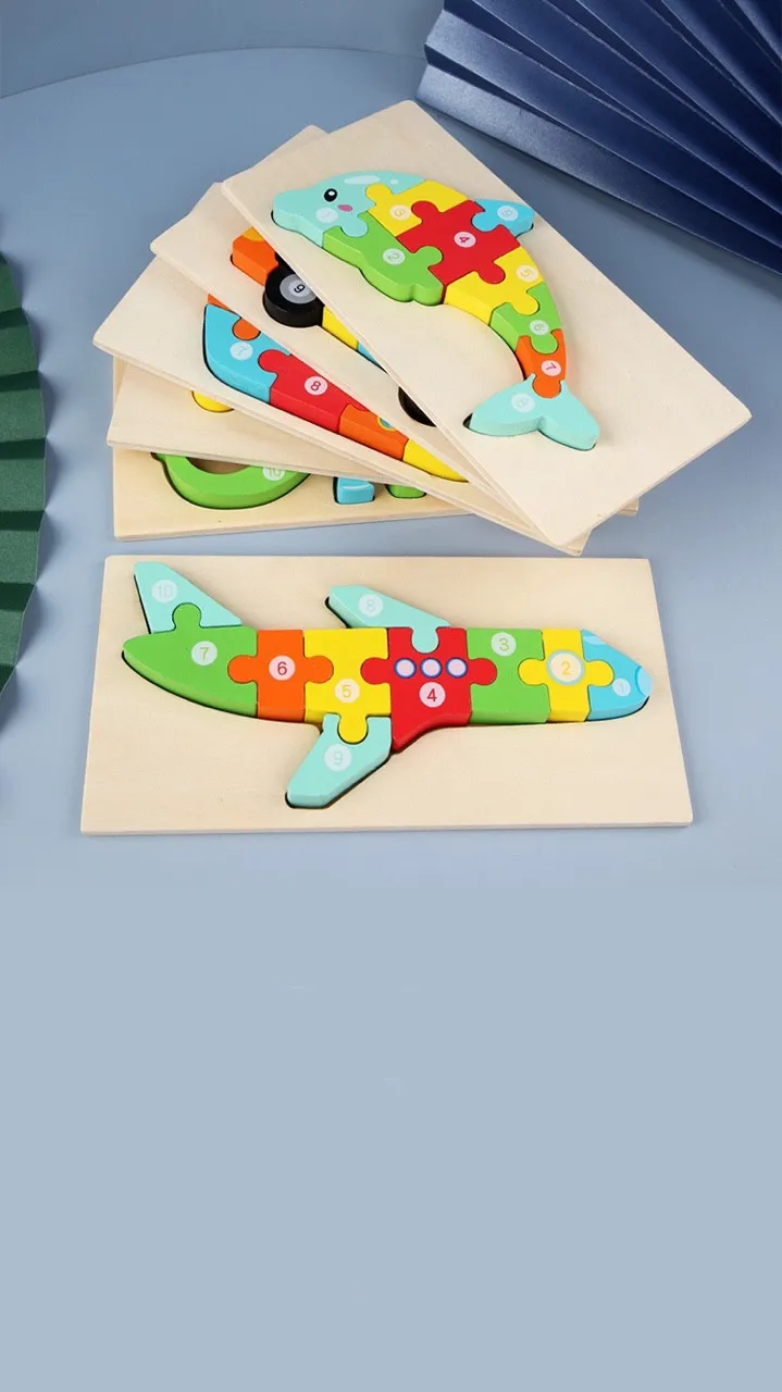 Доска-пазл детская деревянная, с 3d-рисунком животных