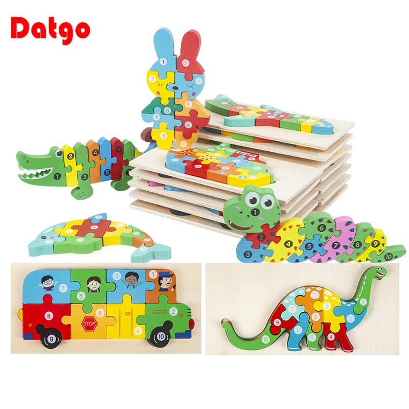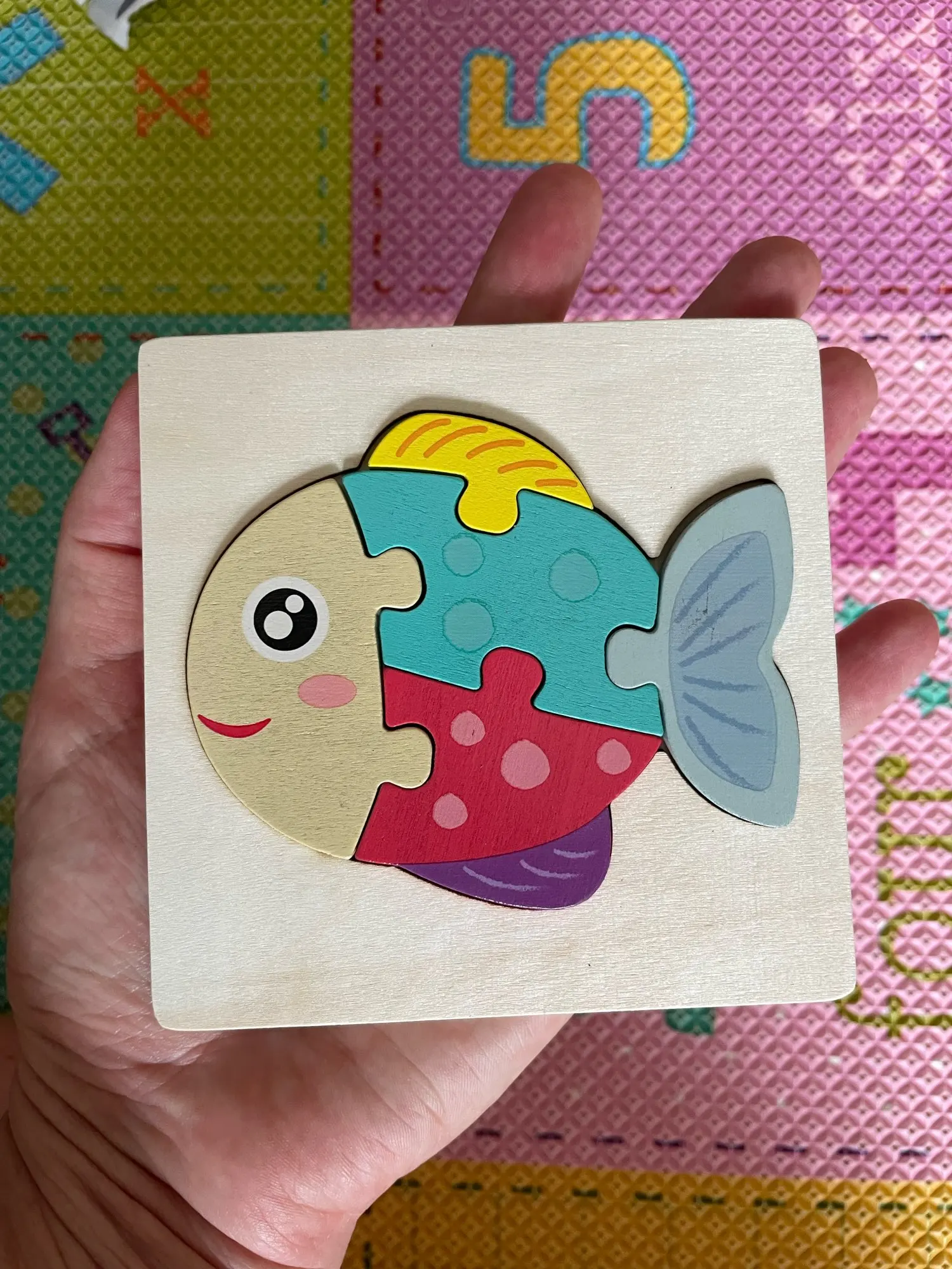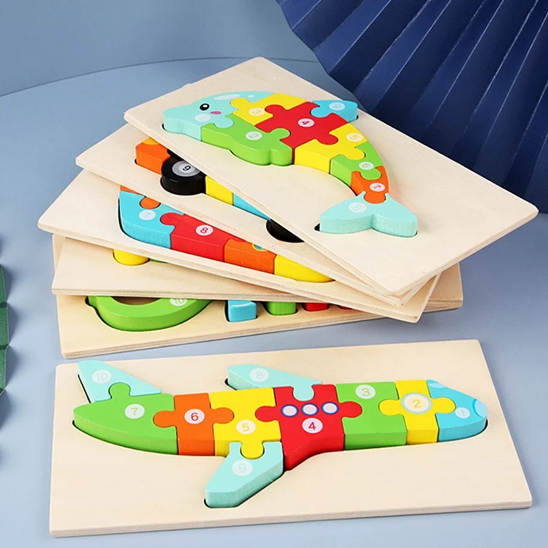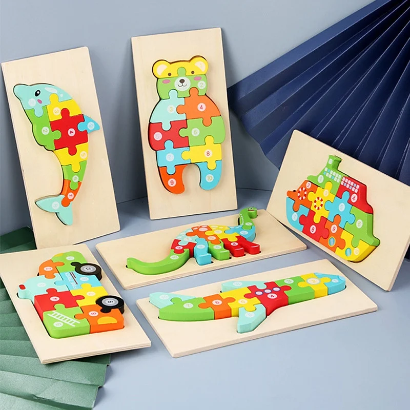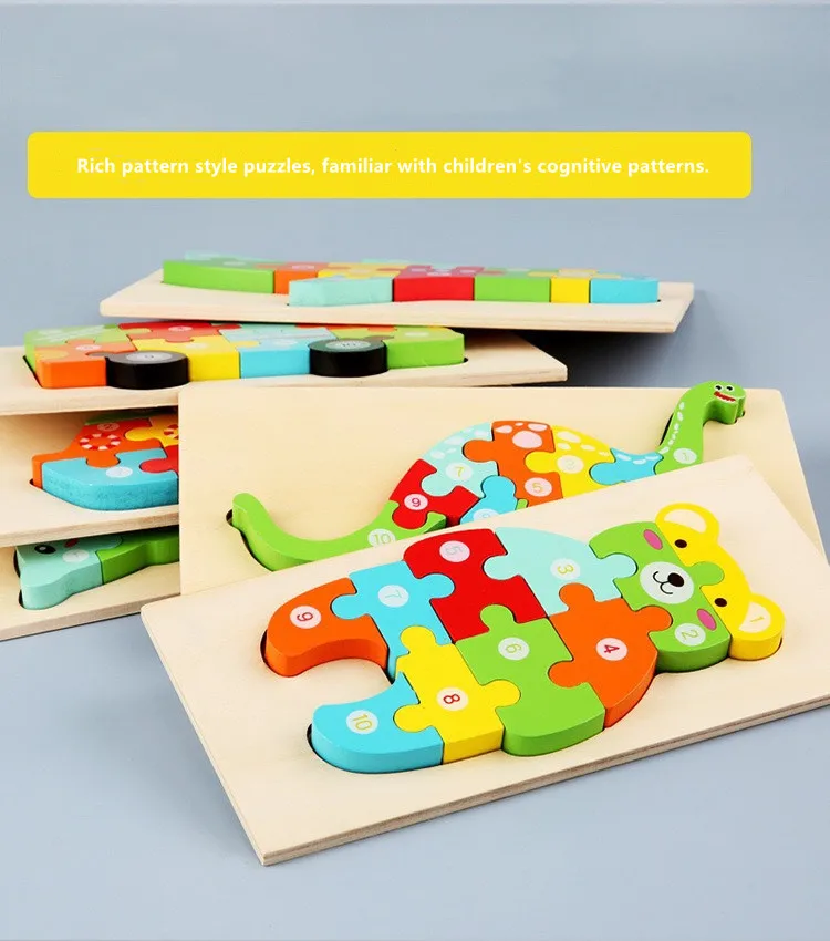 Доска-пазл детская деревянная, с 3d-рисунком животных