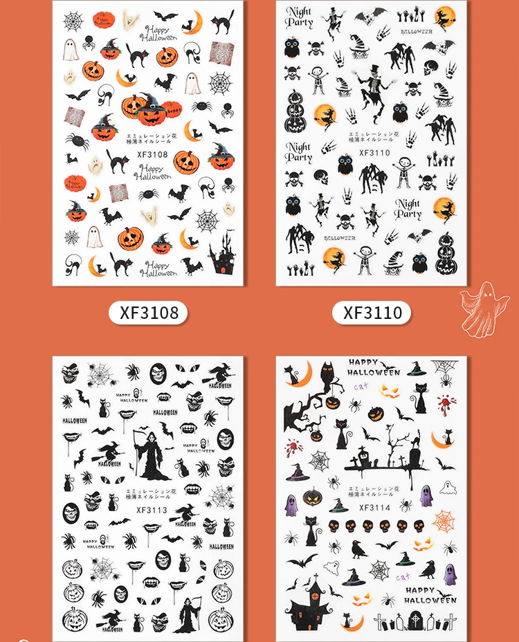 Наклейка для ногтей на Хэллоуин, наклейка на заднюю панель, 3D диза...