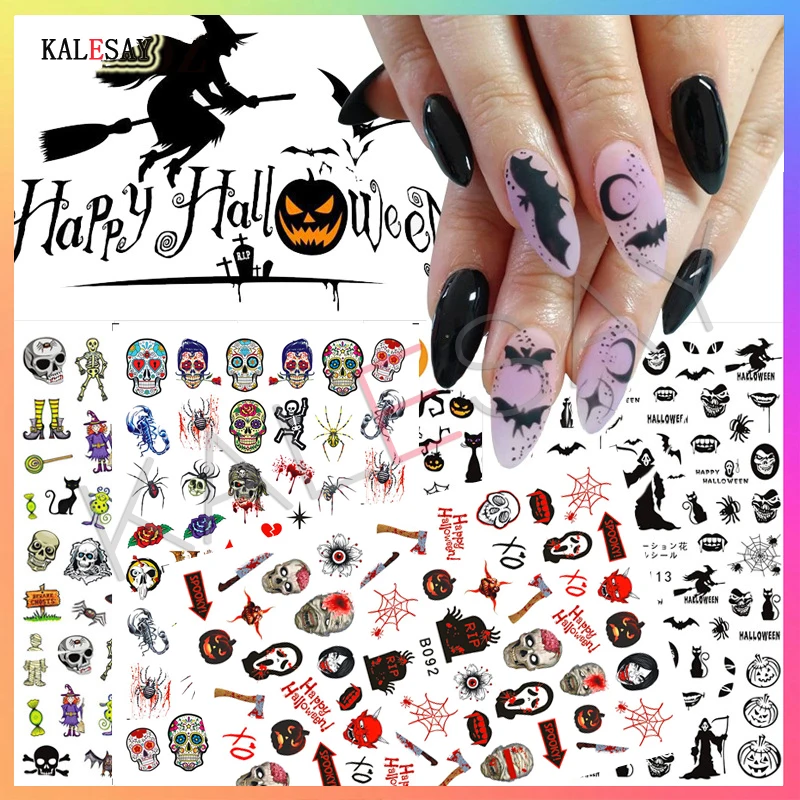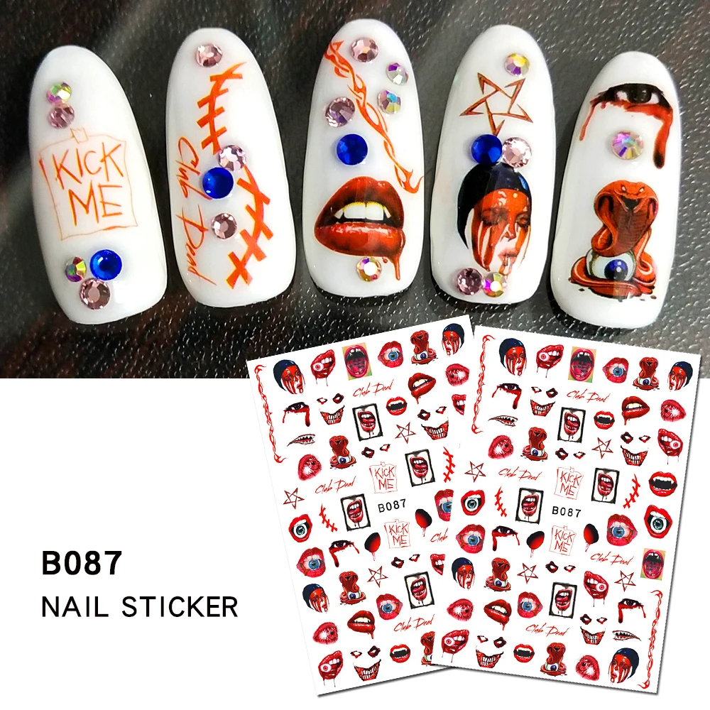 Наклейки для дизайна ногтей на Хеллоуин, маникюр, самоклеющиеся наклейки для ногтей с черепом и губами, наклейки для ногтей, декоративные обертывания, ведьмы