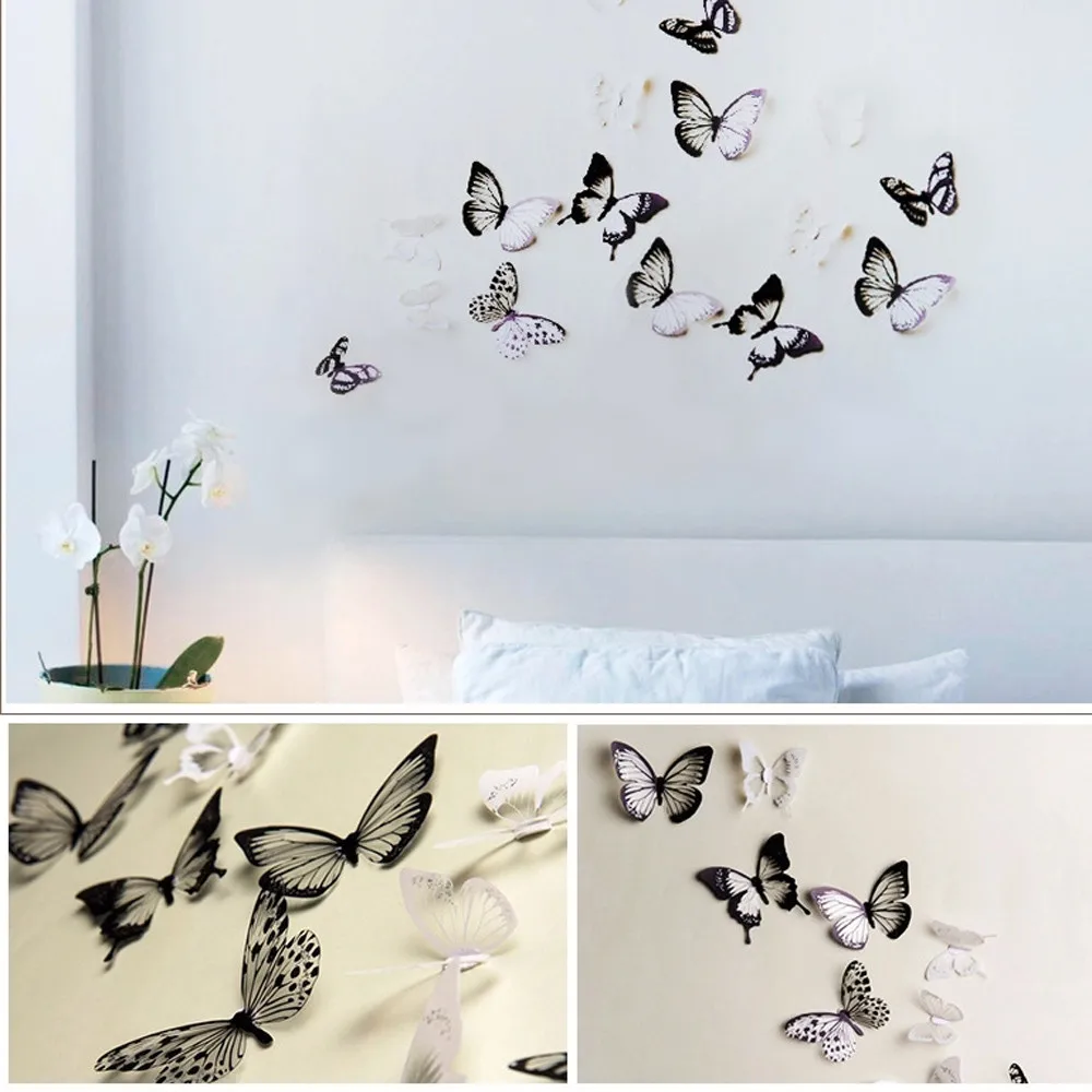 18 шт 3D Черно-белая бабочка Наклейка Искусство Настенная Наклейка ...
