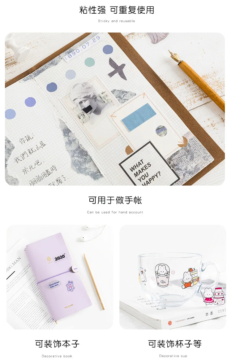 Набор стикеров из бумаги Washi 40 шт., клейкие канцелярские наклейк...