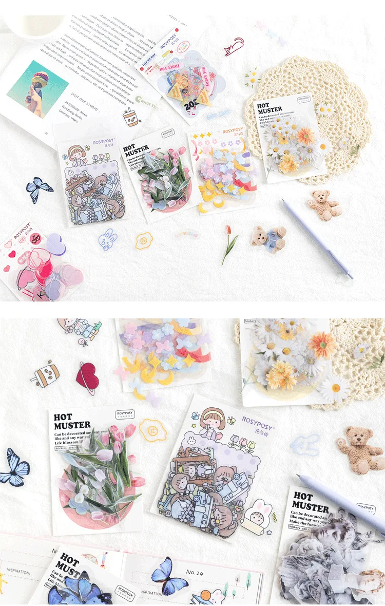 40 шт. эстетичные наклейки с изображением животных бабочки маргаритки ангела медведя журнал канцелярские принадлежности Скрапбукинг фоновые украшения наклейки