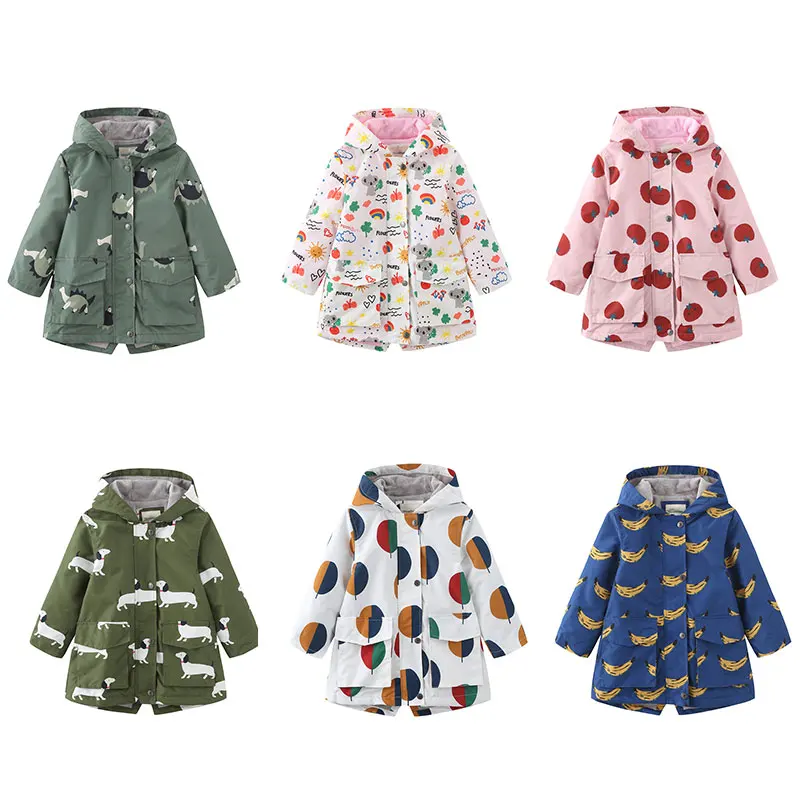 2021 зимние пальто для мальчиков и девочек, детская длинная куртка с капюшоном и мультяшным принтом, флисовая уличная теплая ветрозащитная дождевая детская верхняя одежда