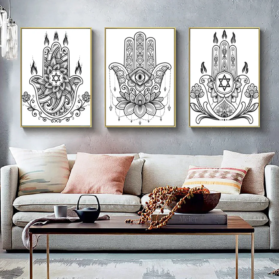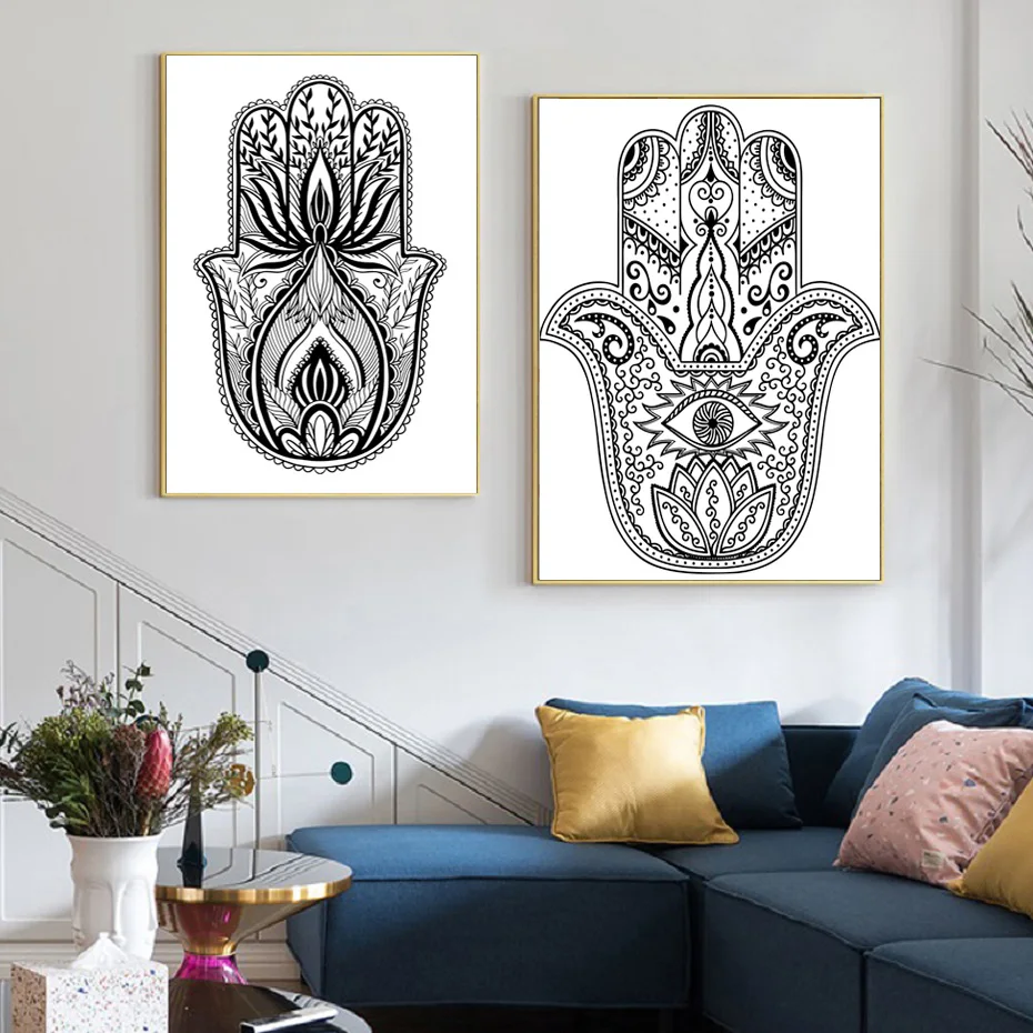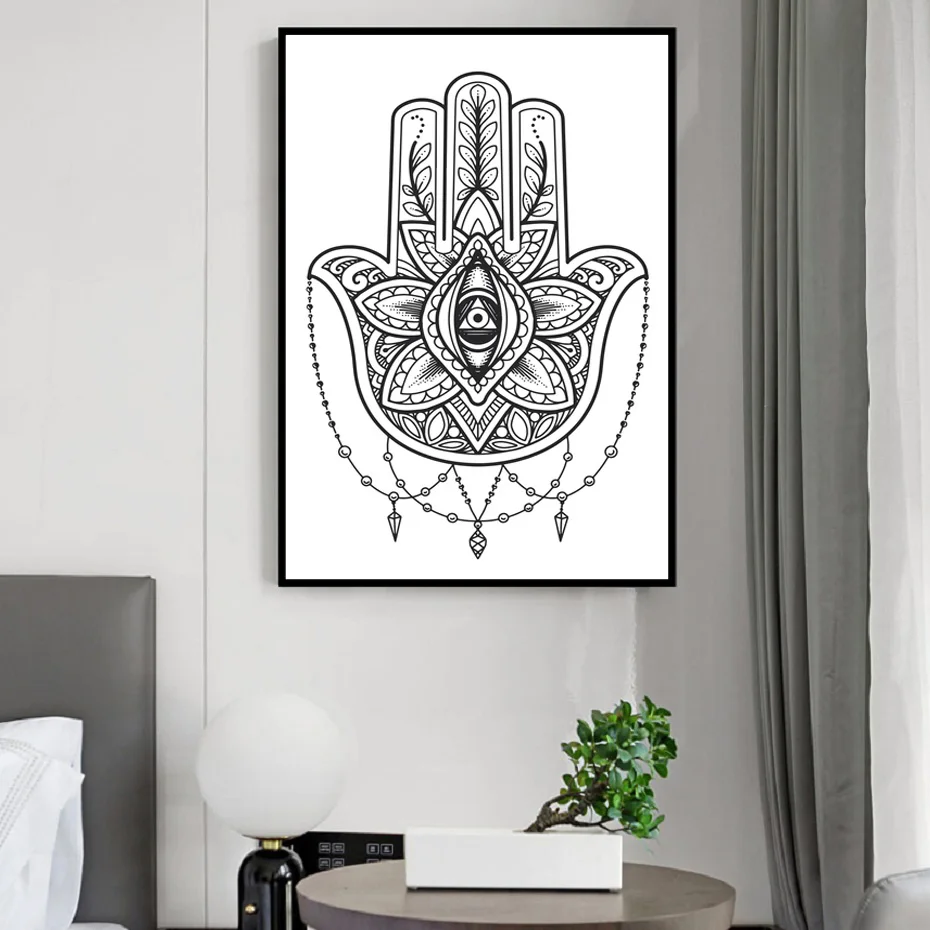 Черно-белая ручная роспись Фатима художественный узор холст живопись плакат Настенные буддийские принты кабинет спальня домашний декор
