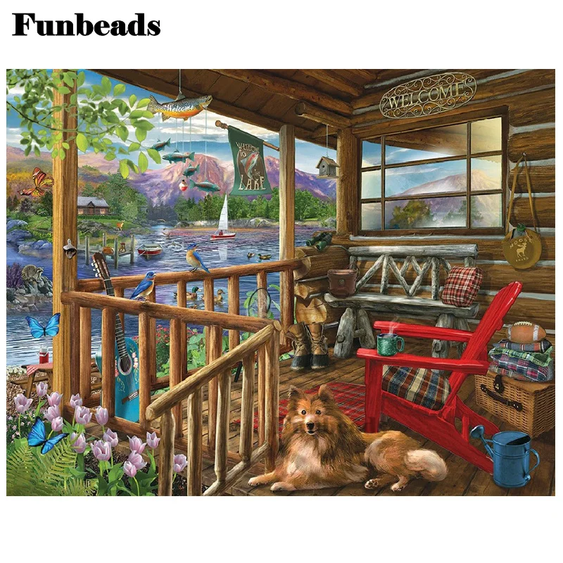 Полностью алмазная живопись, природный пейзаж, горы, Озеры, алмазна...