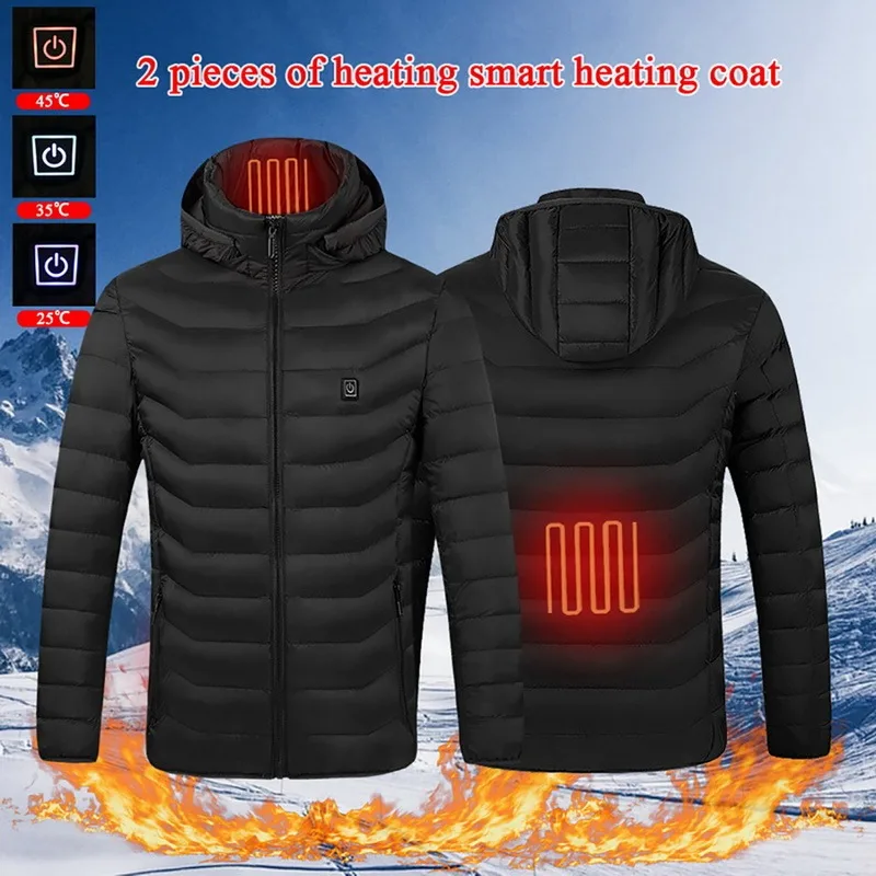 Куртка с подогревом для мужчин и женщин, Модное теплое пальто с умным USB-разъемом и электрическим подогревом, теплая зимняя жилетка с подогревом, 2 шт., большие размеры