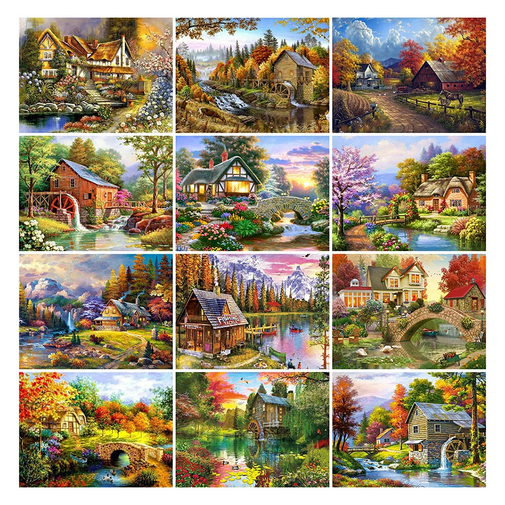 Алмазная 5d картина сделай сам с полным покрытием, вышивка пейзажем...