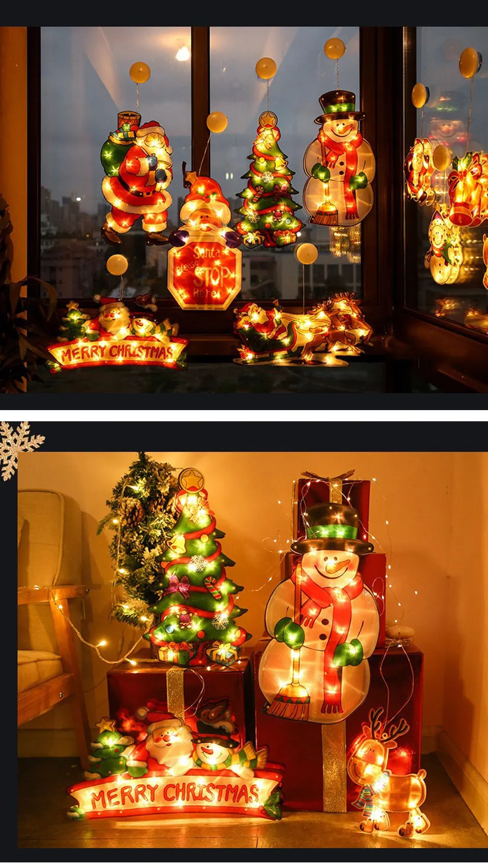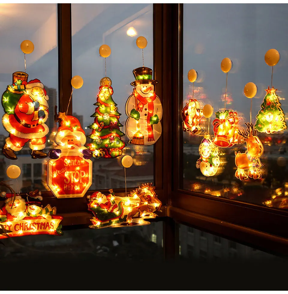 Декоративные светодиодные светильники на присоске, в форме Санта-Клауса, снеговика, оленя